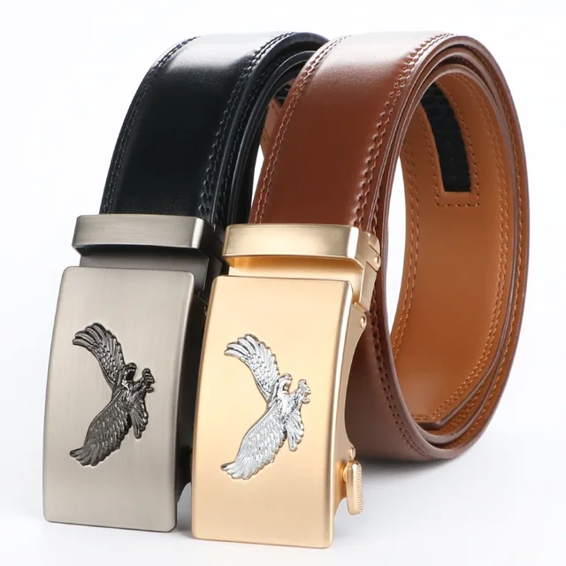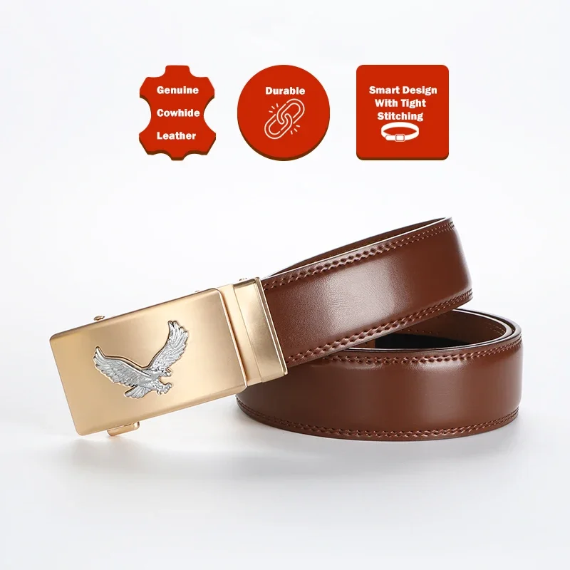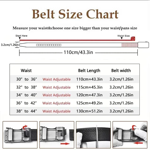 2pcs Genuine Leather Ratchet Belt for Men – Adjustable Automatic Buckle, Versatile Casual Business