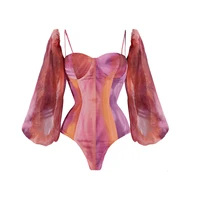 2Pcs Hollow Swimsuit Women Sexy Swimwear With Skirt Floral Bikini Halter Bathingsuit Female V Neck Bodysuit