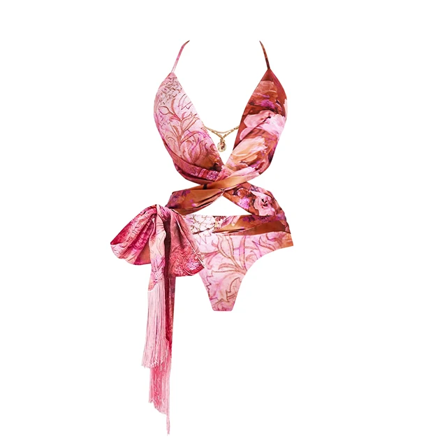 Be the first to review “2Pcs Hollow Swimsuit Women Sexy Swimwear With Skirt Floral Bikini Halter Bathingsuit Female V Neck Bodysuit”