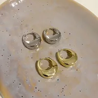 2Pcs New Classic Gold Color Plated Metal Hoop Earrings For Women, Fashion Jewelry Temperament Girls Daily Wear Stud Earrings