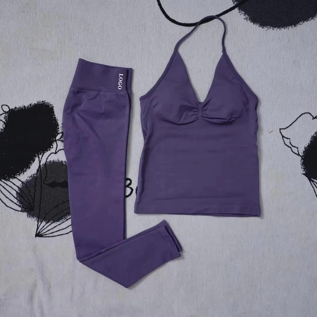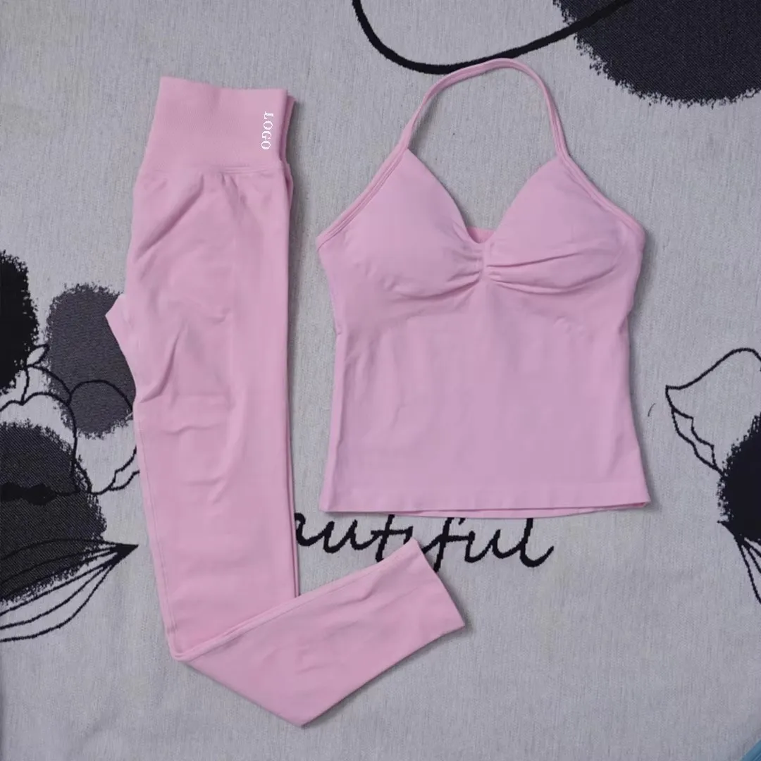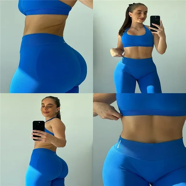 2Pcs Women’s Gym Yoga Set Seamless High Waist Leggings Sports Bra Top Workout Outfit Fitness Activewear