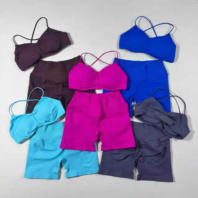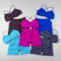 2PCS Women’s High Stretch Gym Sportswear Impact Vision Shrug Sports Bra Shorts Set Comfortable