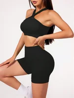 2Pcs Yoga Sets Naked Feel Gym Set Women Workout Clothes High Waist Yoga Shorts And Strappy Sports Bra Short Sets Summer