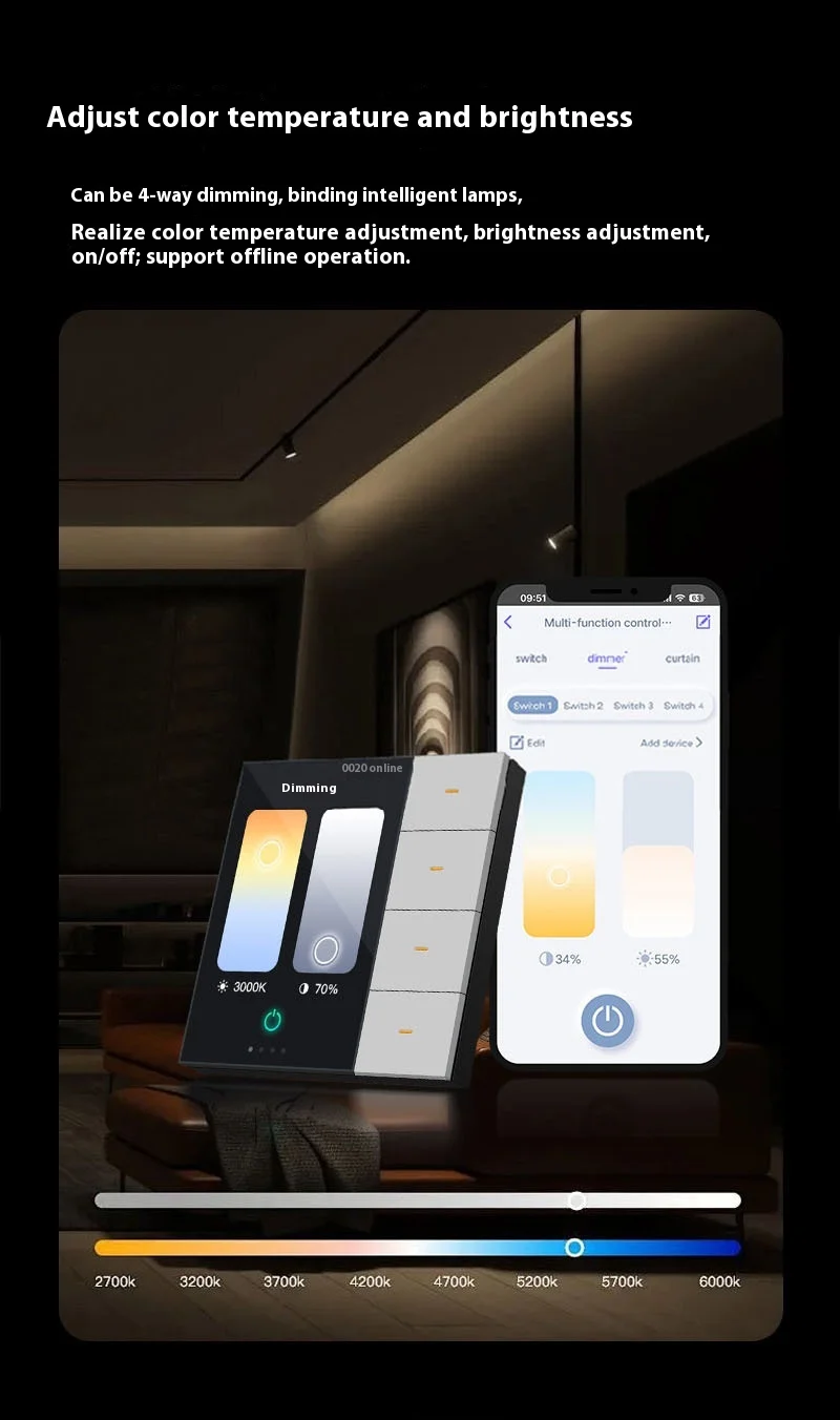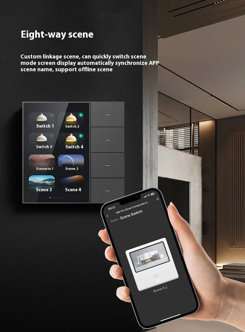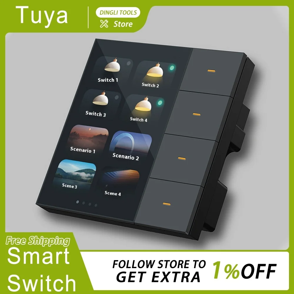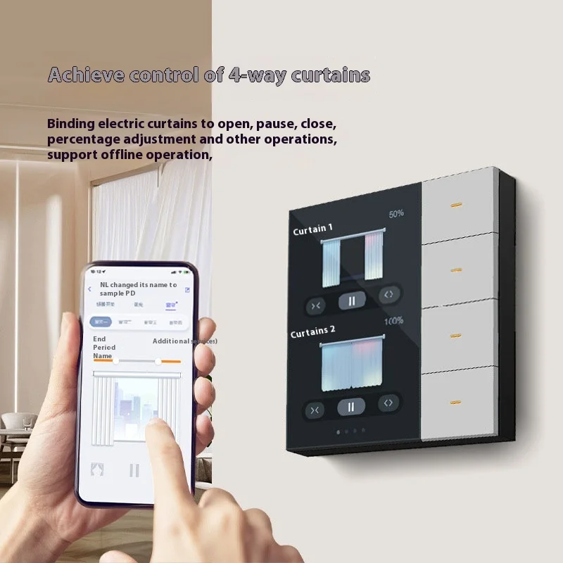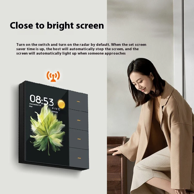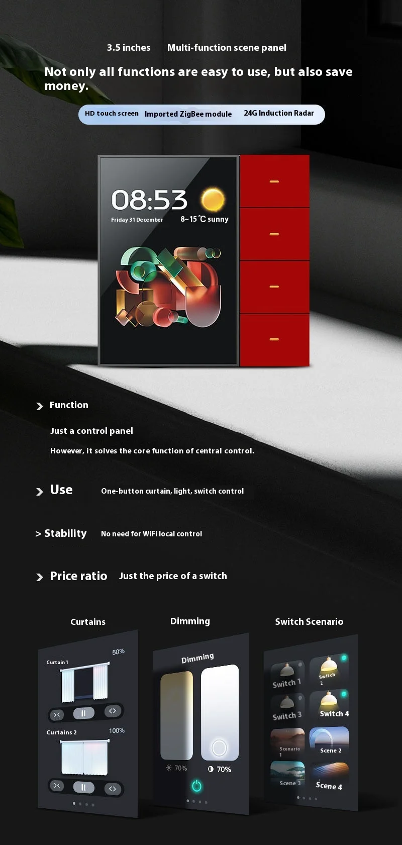 3.5 Inch Smart Wall Switch Touch Screen 4Groups Switch 8-Way Scene Radar Sensor Dimming Switch Curtain