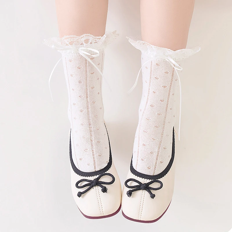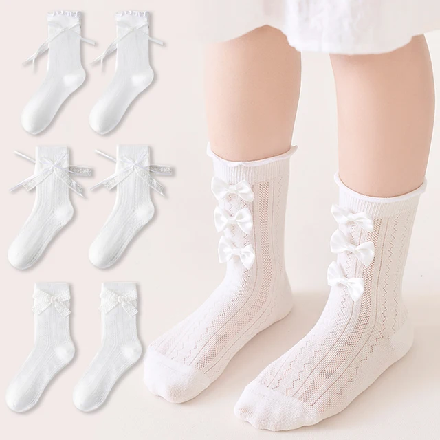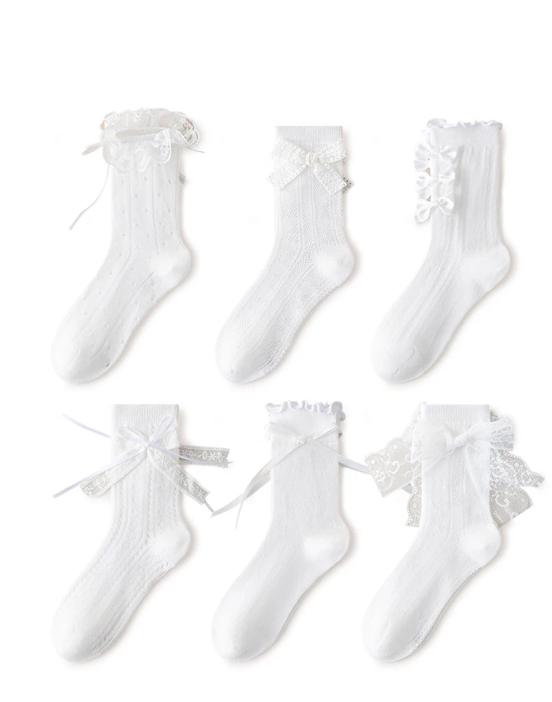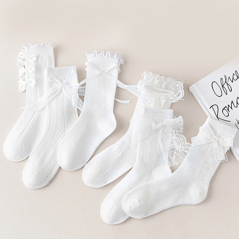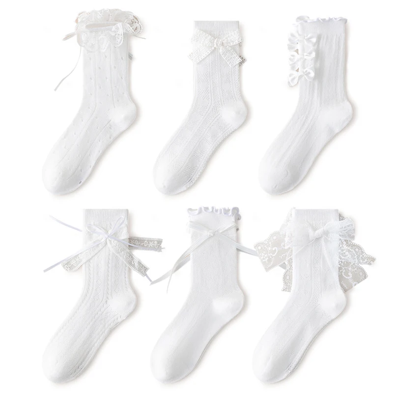 3/6 Pairs Girls Socks White Princess Lace Socks Kids Girl Breathable Children Socks Comfortable Mid Tube Socks For Girls