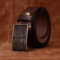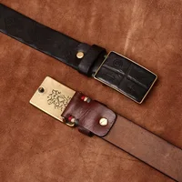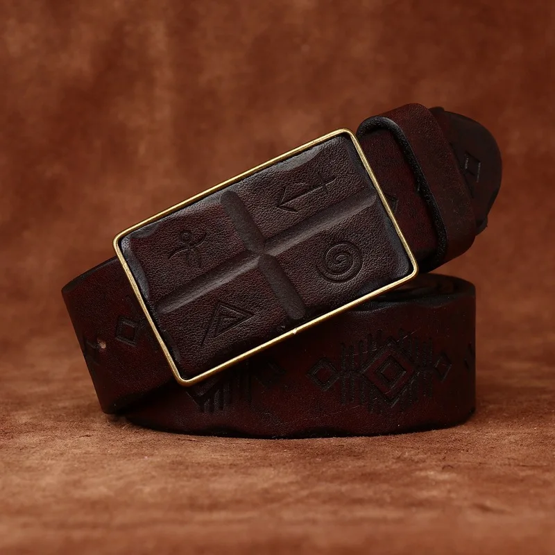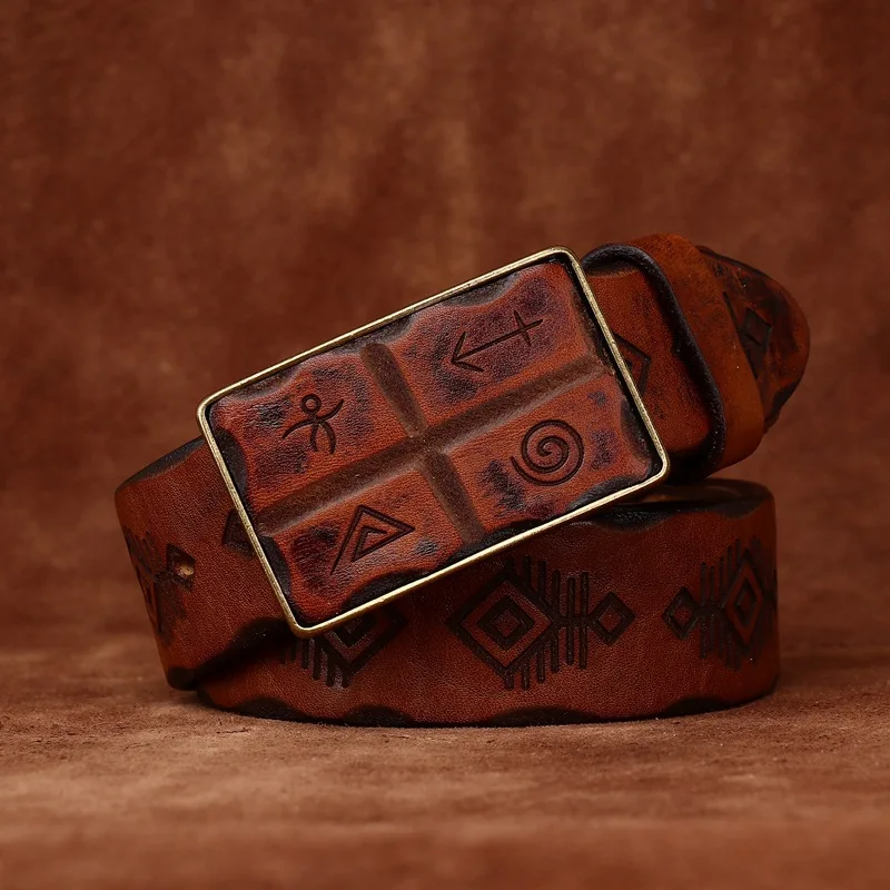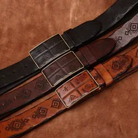 3.8CM High Quality Genuine Leather Belt Luxury Smooth Buckle Belts Pure Cowskin Retro Laser Engraving