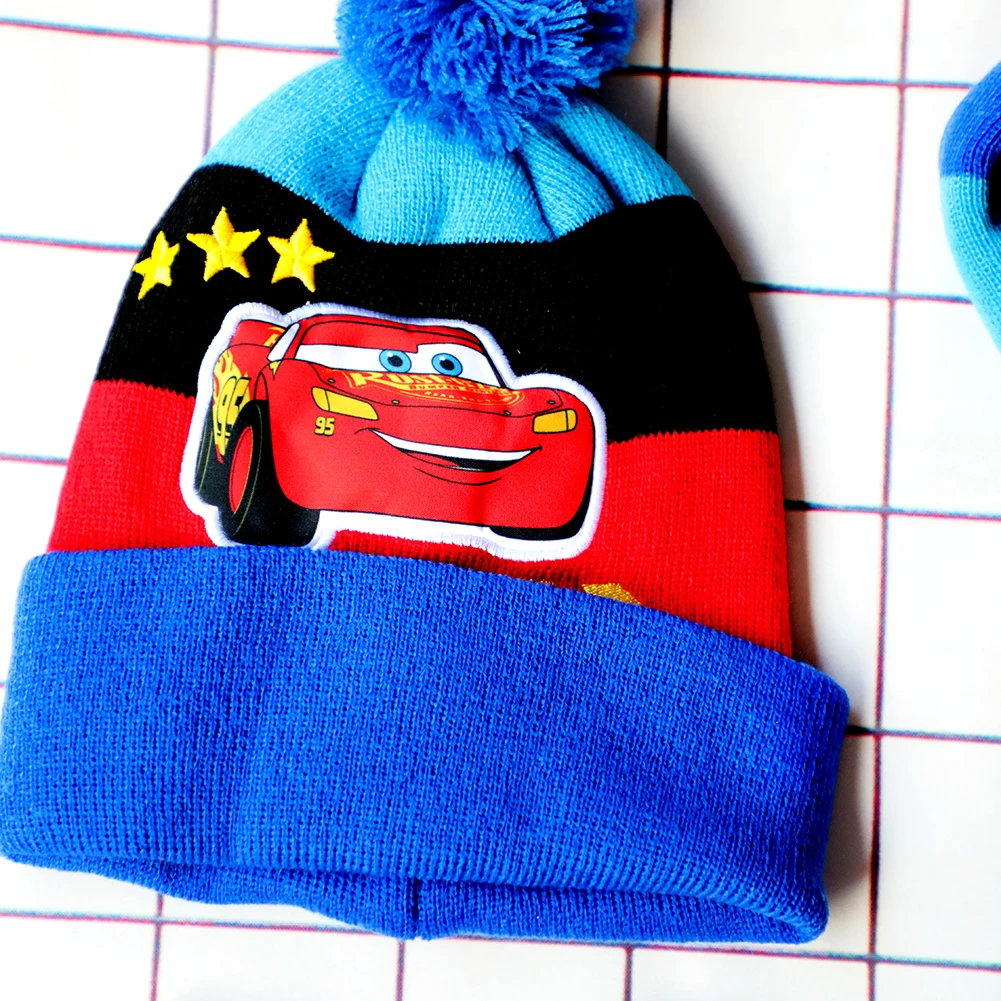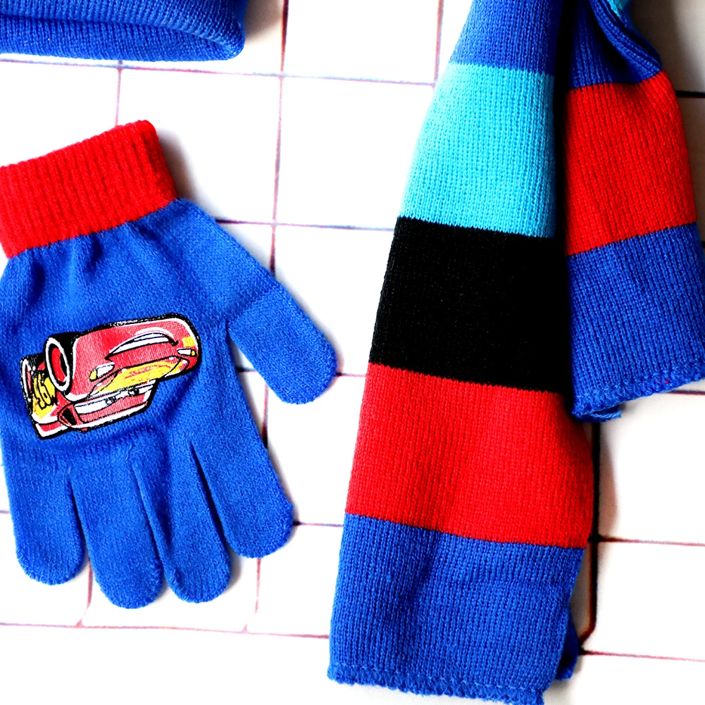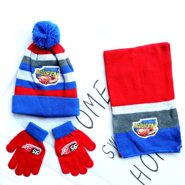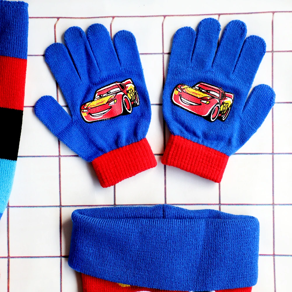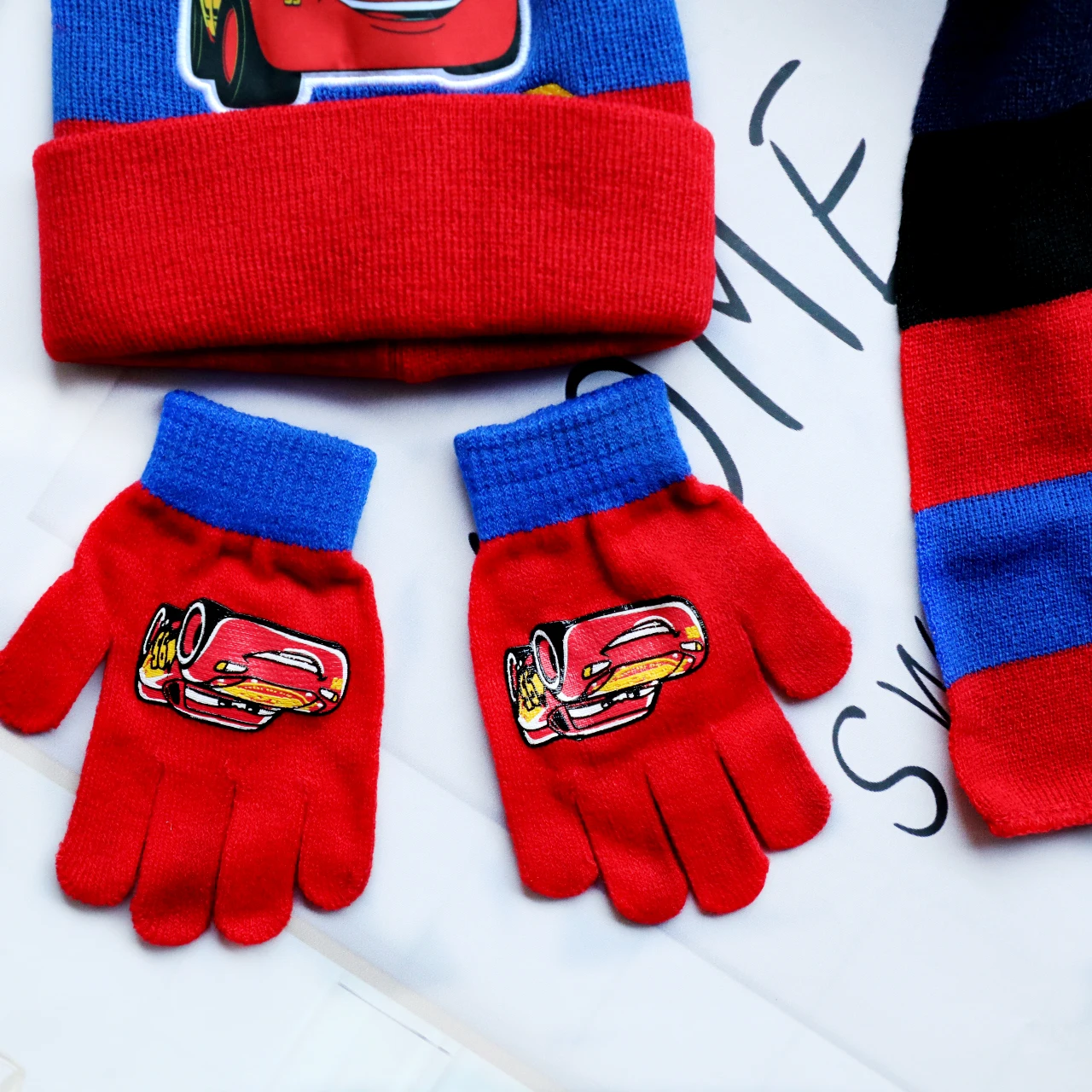 3-8Years New Autumn Winter Children Cars Lightning Mcqueen Cartoon Scarf Hat Glove Three-piece Warm Boy Girl Child Christmas Hat