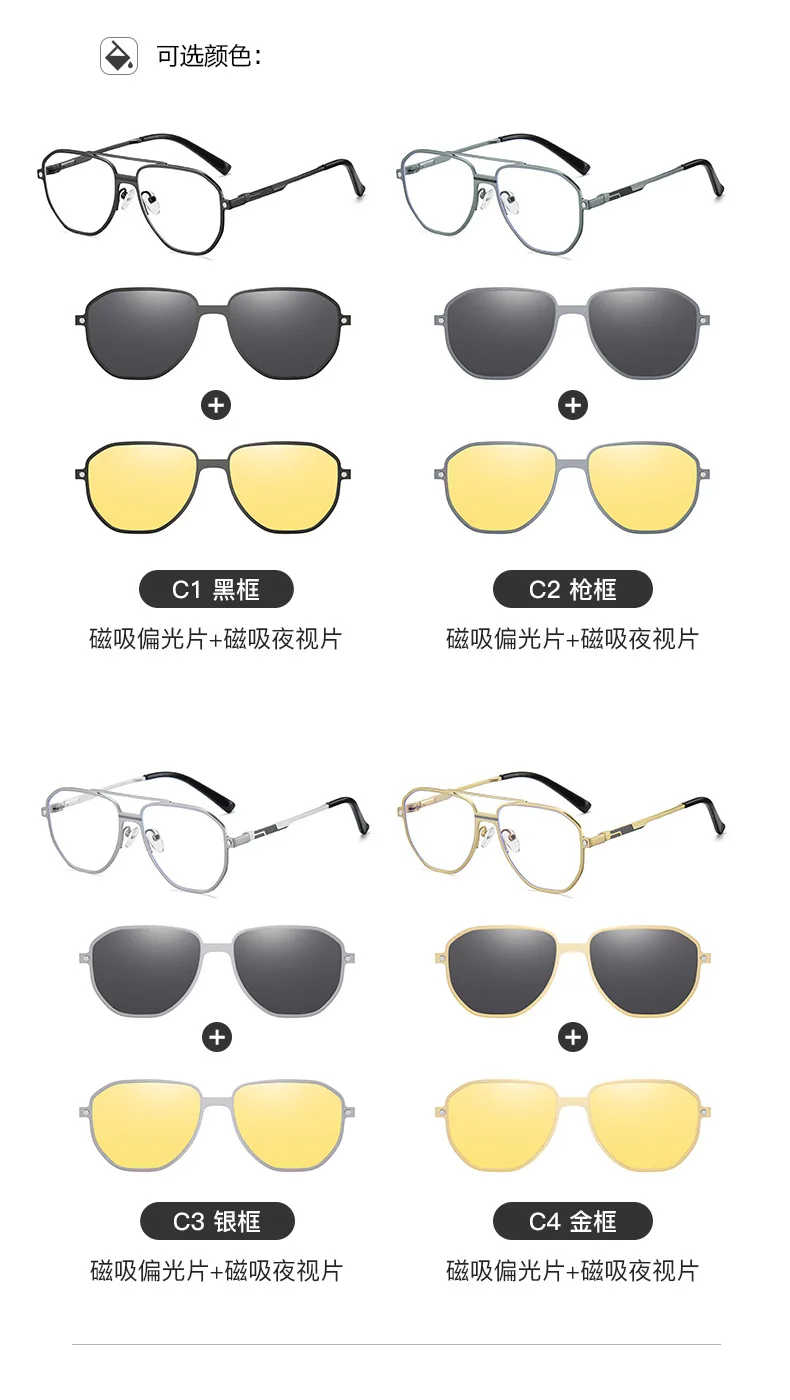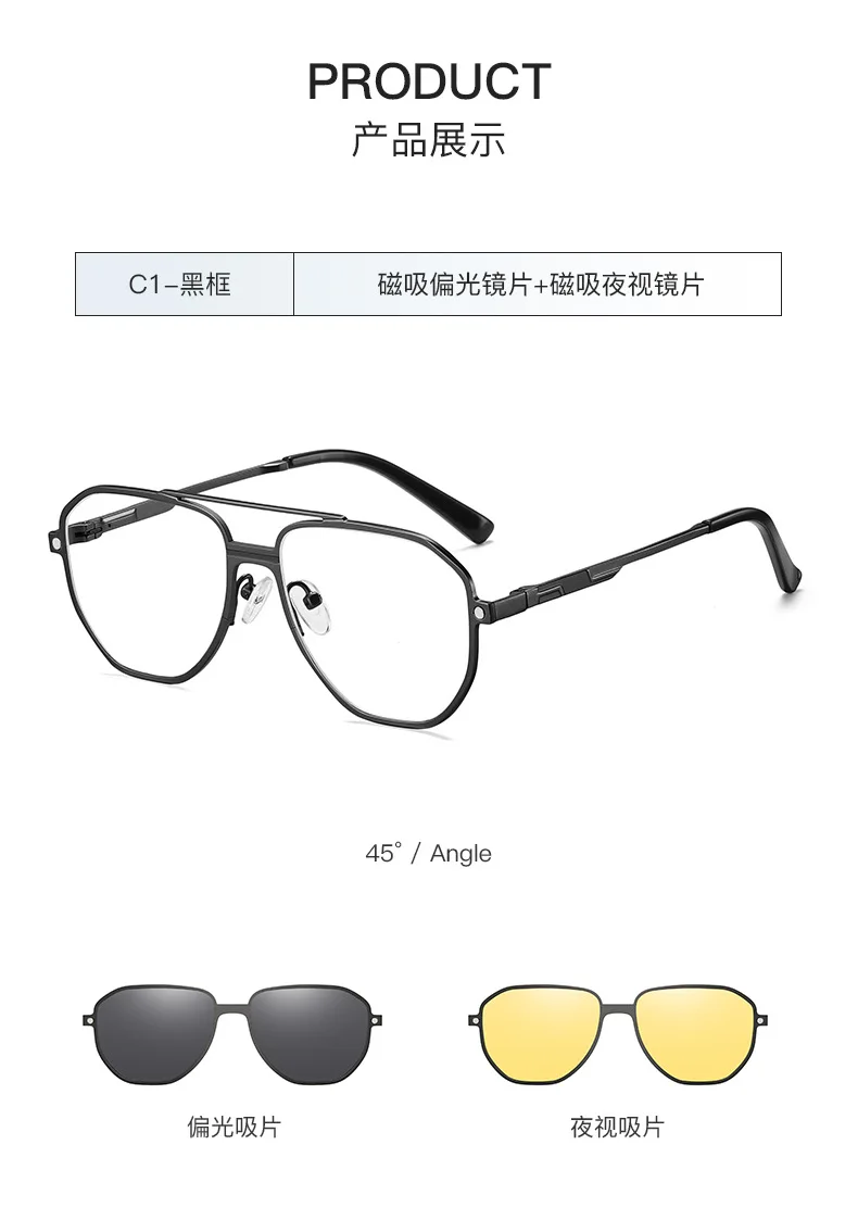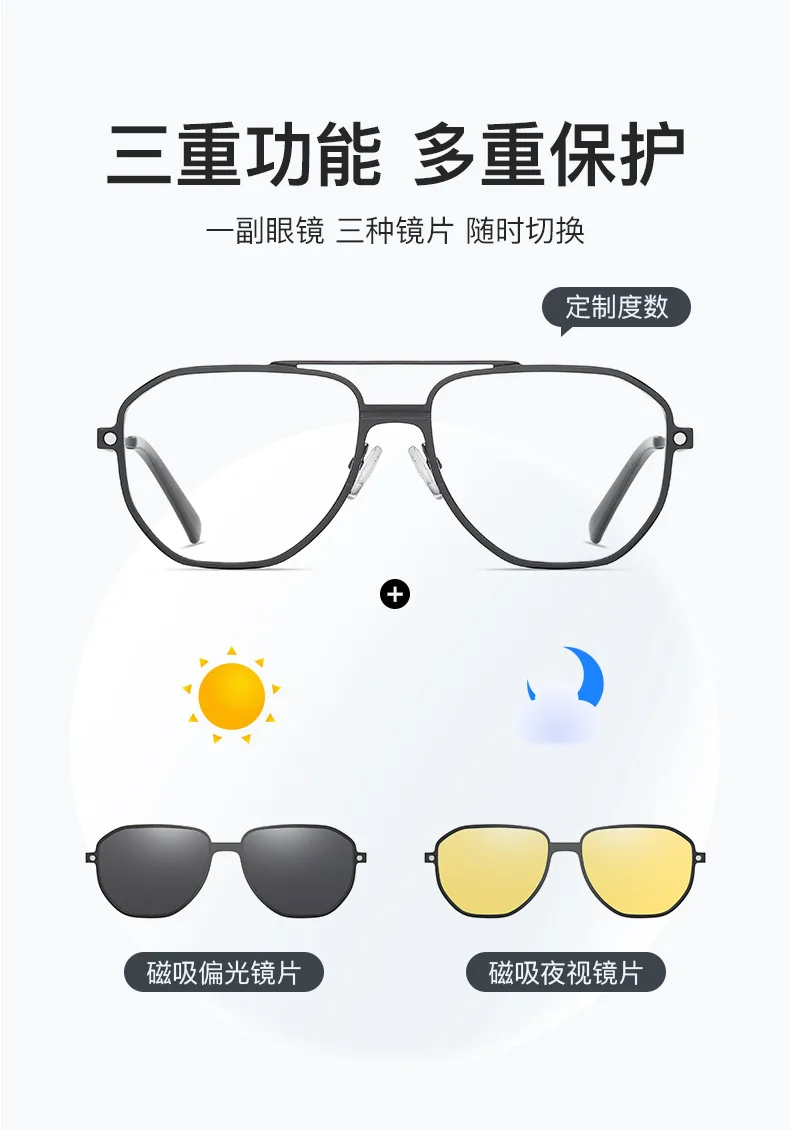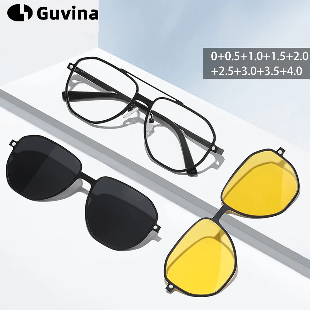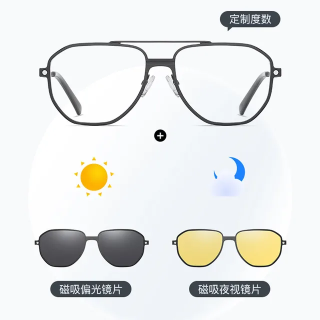 3 in 1 Men Women Polarized Night Vision Sun Clip Magnet Optical Sunglasses Prescription Eyeglasses Driving Glasses With Diopter