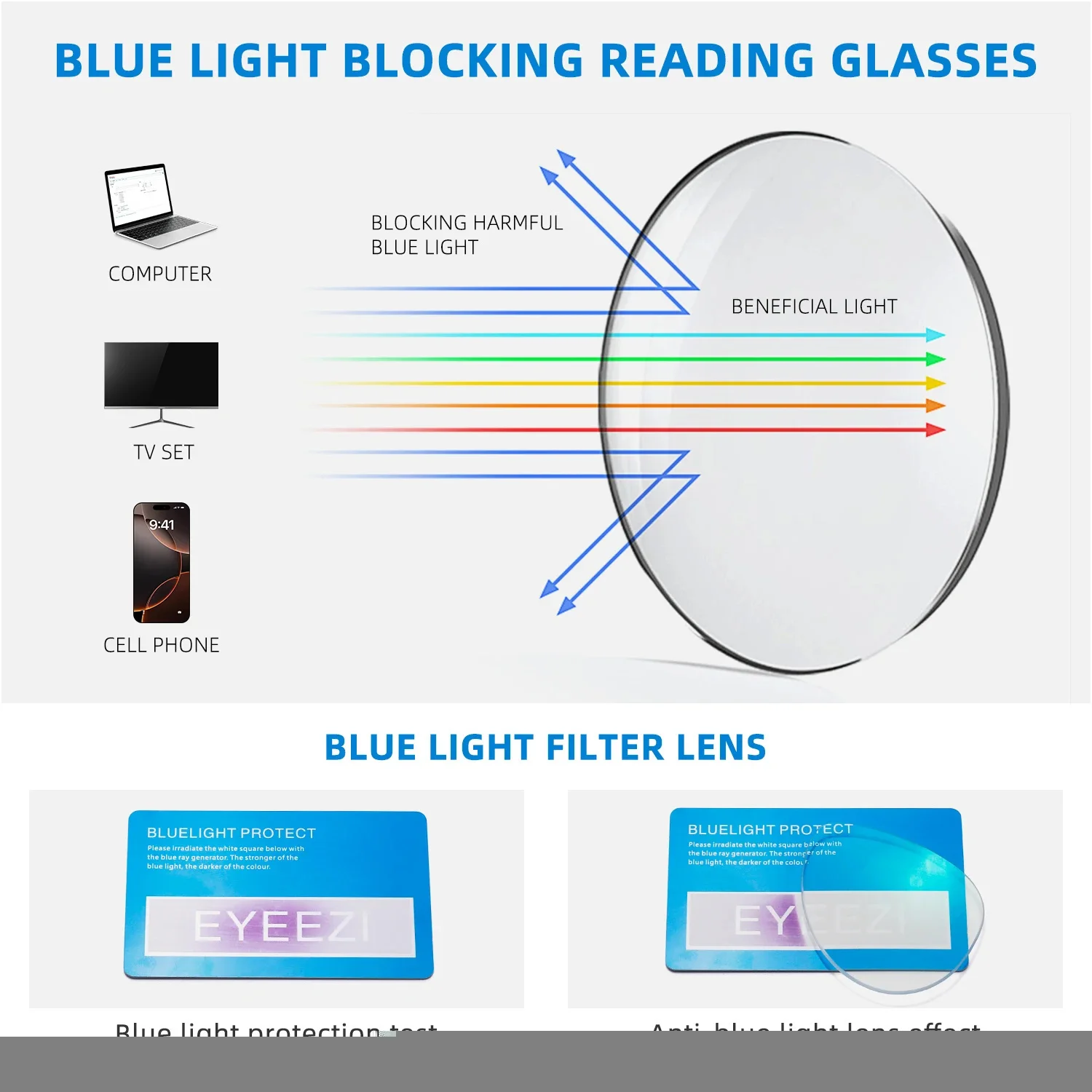 ❤【Anti-Blue Light High Definition Lenses】 Blue light blocker lens with UV400 protection, anti-glare and reduce eye strain & discomfort caused from a long time reading, using computer phones, laptop, no more worry about eye fatigue and headache.This anti-blue light reading glasses can effectively relieve eye fatigue caused by long hours of reading, working and watching, by blocking blue light and UV400, improve sleep and prevent headaches.