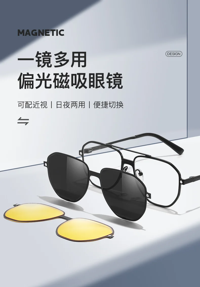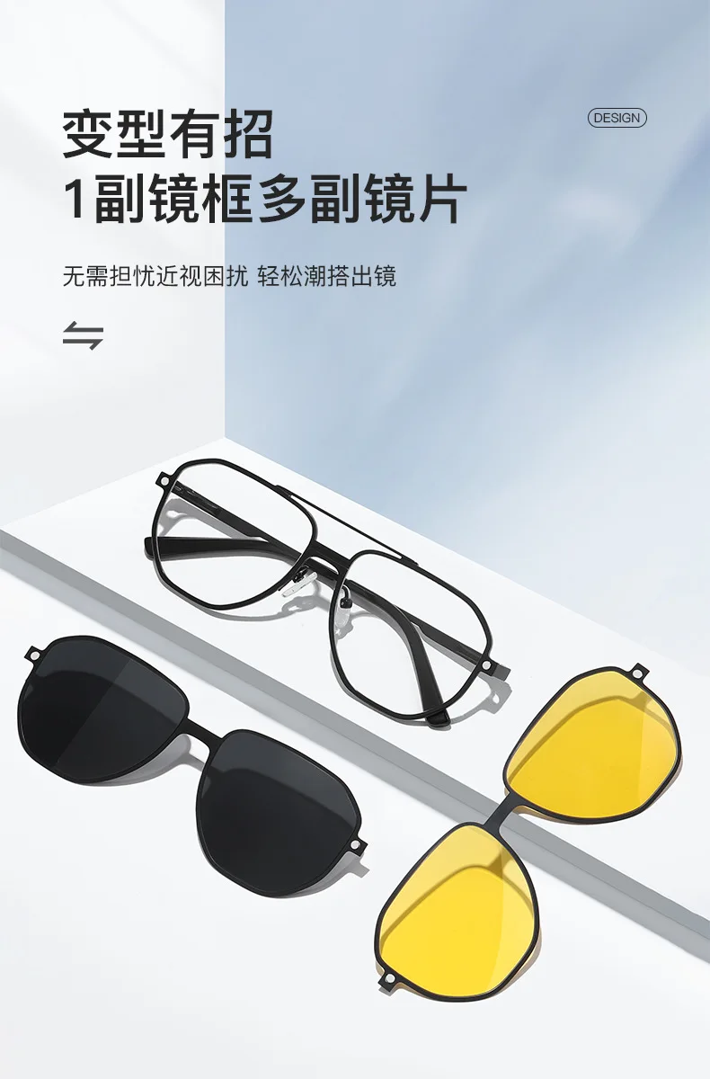 3 in 1 Men Women Polarized Night Vision Sun Clip Magnet Optical Sunglasses Prescription Eyeglasses Driving