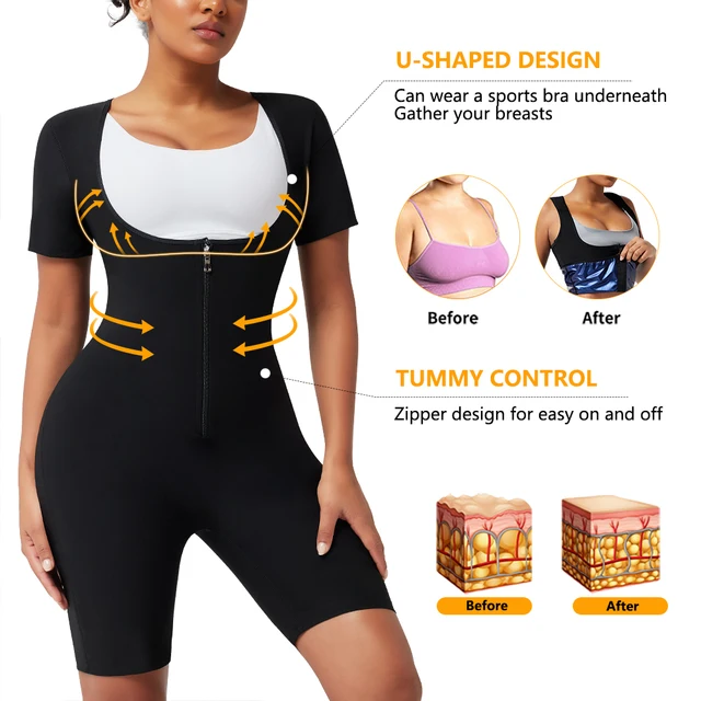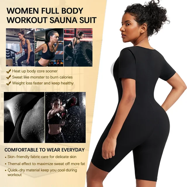 ☑ ALL IN ONE BODY SHAPER: Get 1 of the stylish full-body sweat suit, you will get 3 parts functional effects of it-get a short sleeve sauna shirt, a full body waist trainer for women, and tight sauna pants for women! The short sleeve sauna shirt for women keeps the upper body straight and slimming upper arms, the waist trainer helps to control the tummy, and the sauna shorts part slims the thighs. The sauna bodysuit can not only make sweat more but also help you to show a better body shape!