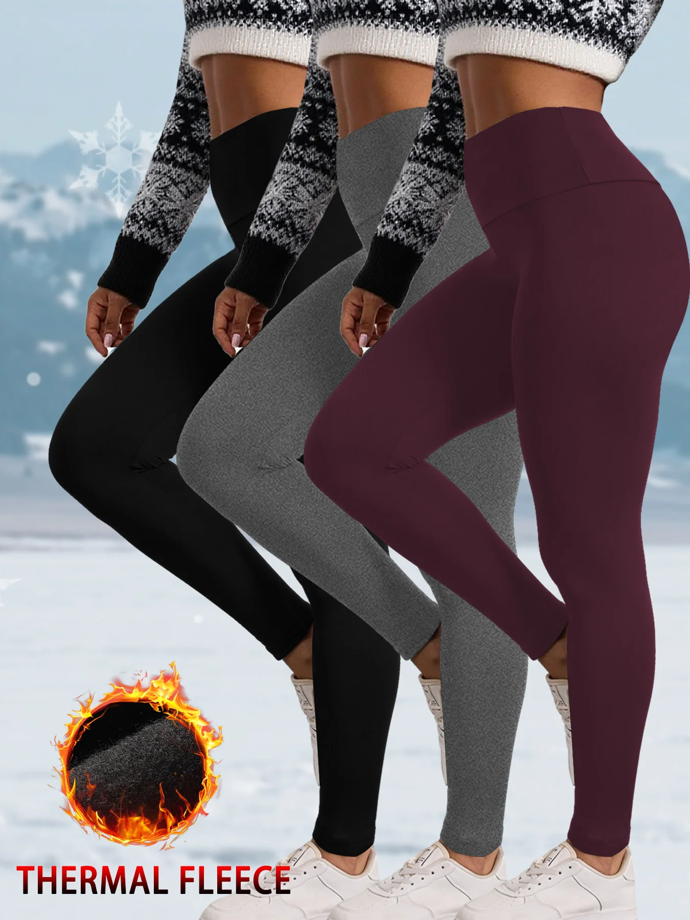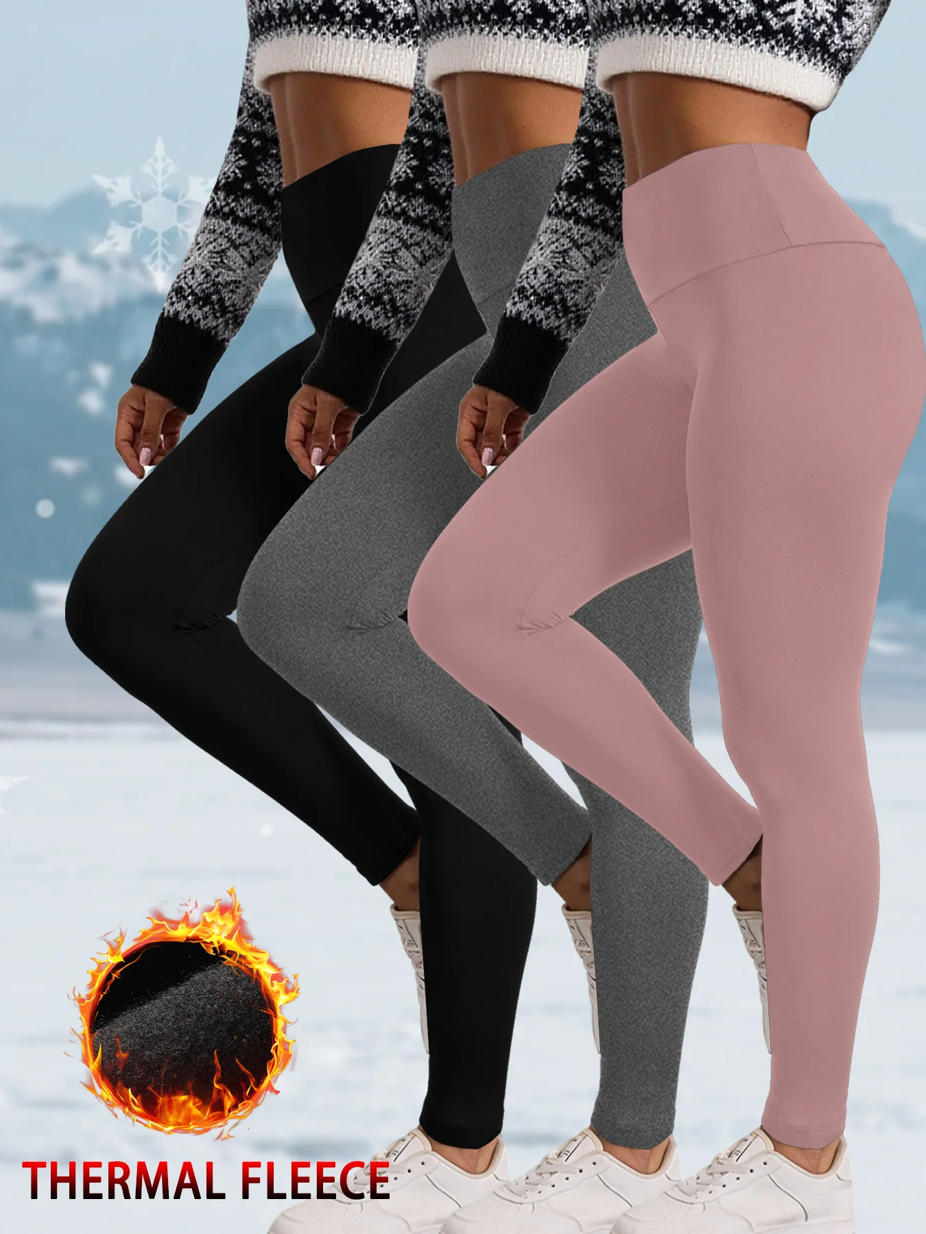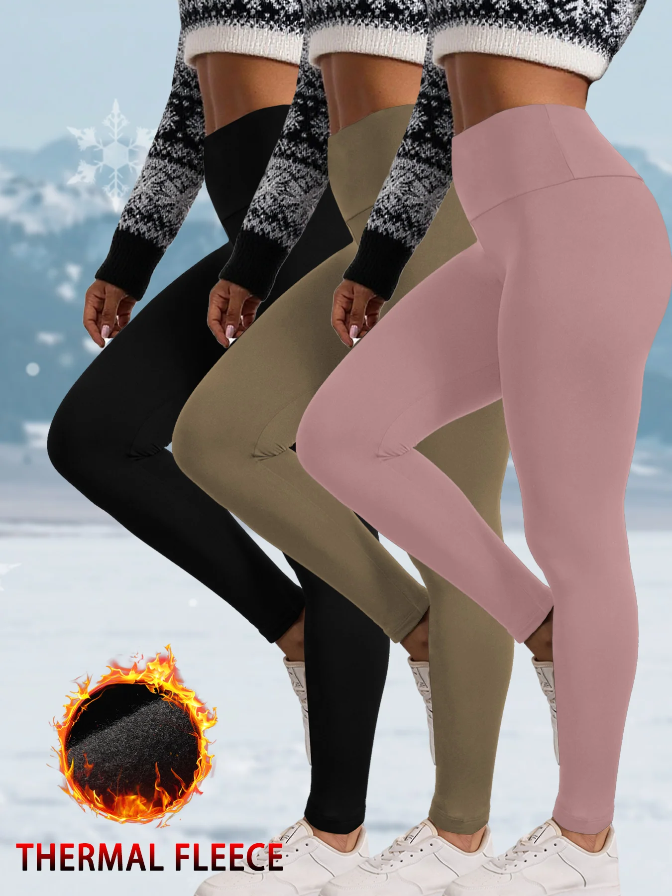 -55%3 Pack Womens Thermal Fleece Lined High Waisted Leggings. Workout Winter Warm Thick Tights Soft Yoga Pants