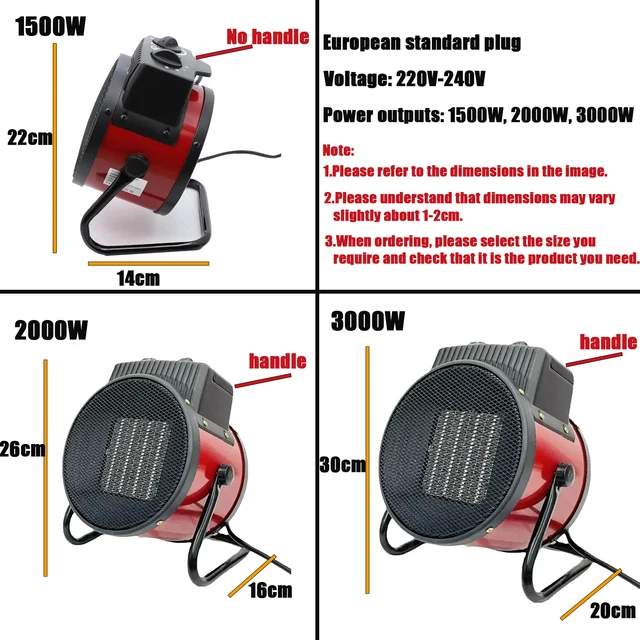 The product comes in three power ratings: 1500W, 2000W, and 3000W, All three use European plugs and are suitable for countries with voltagesof 220V-240V, Please check the compatibility before ordering. We do not recommend using a transformer due to the high power rating ofthepreduct.