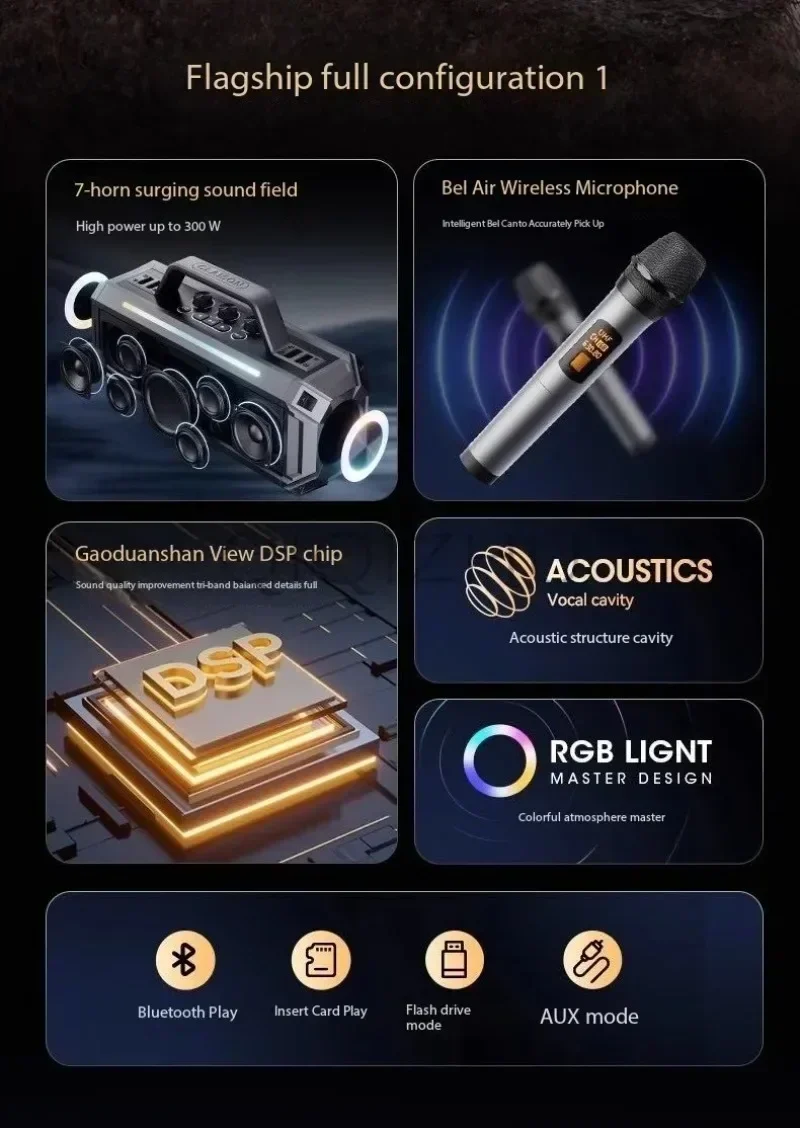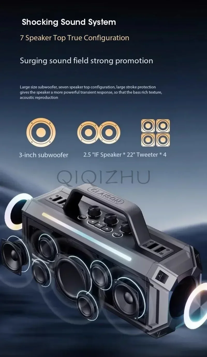 2. Designed for Multifunctionality and Extended Playtime: Tailored to meet diverse playback needs, this speaker with microphone supports Bluetooth connectivity, USB, TF card, Aux input, and an echo function for enhanced audio experiences. Equipped with Type-C fast charging technology。