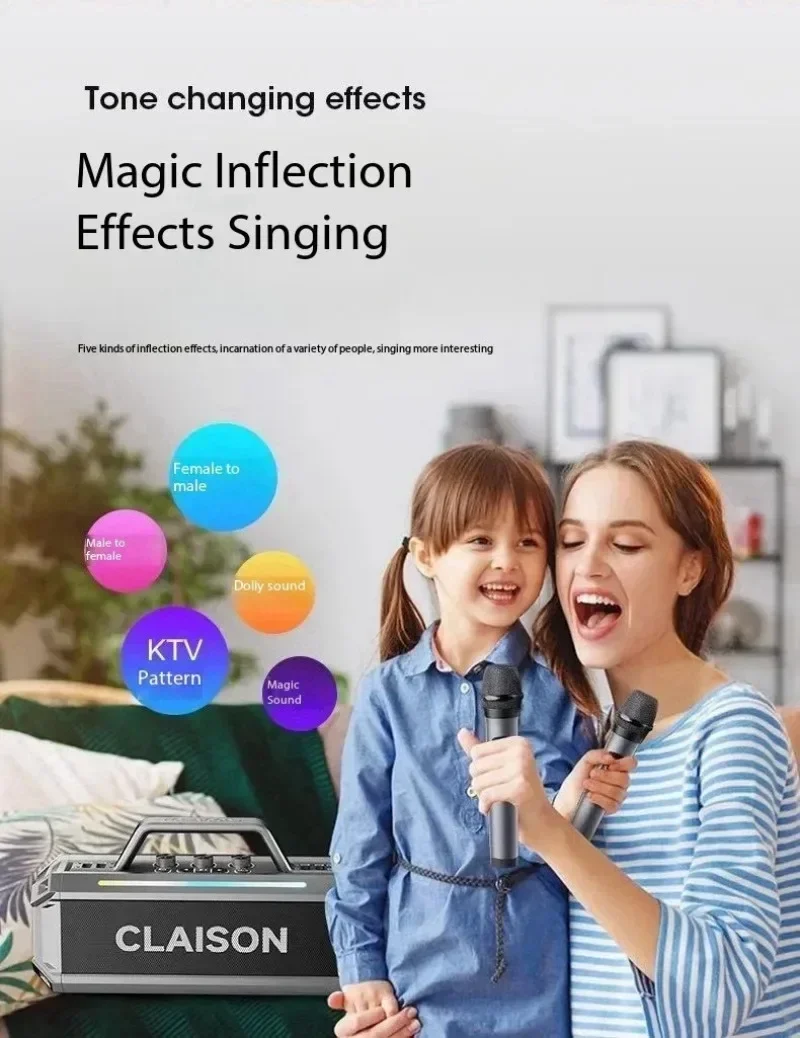3. Dual Wireless Microphones & Flexible Volume Control: This system comes with two wireless microphones that can operate simultaneously, allowing users to adjust volume levels independently on both the microphone and speaker. Choose from a variety of sound effects modes (Acoustic, Profession, Popular, Hip-hop) to suit different settings effortlessly, ensuring optimal performance for various events and performances。