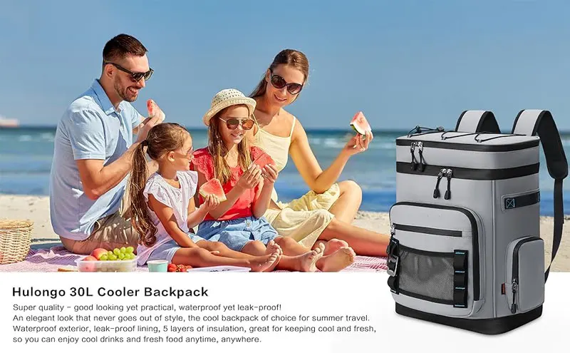 1.Unbeatable Temperature Control: Dive into the ultimate cooling experience with the Hulongo cooler backpack. Crafted with a robust 8mm foam insulation and a state-of-the-art silver PEVA seal, this backpack is your go-to for maintaining your beverages and food at the perfect chill for up to 12 hours. Whether you’re beach-bound, picnicking, hiking, camping, or running errands, your items stay refreshingly cool all day long.