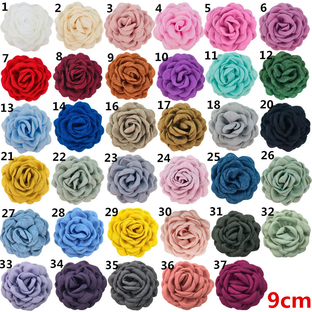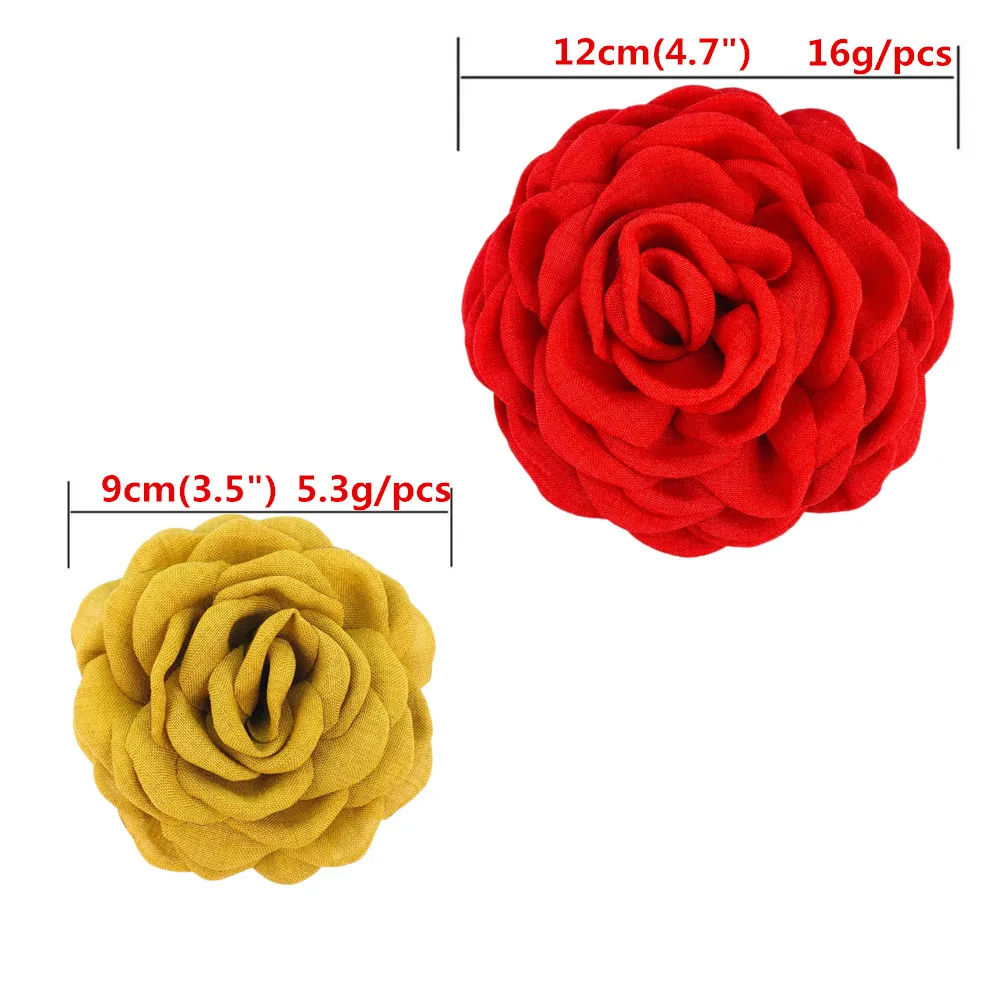 30PCS 3.5" 4.7" Burned Petal Rose Flowers Girls Chiffon Floral Bow Clips Barrettes For Crafts Clothing Wedding Decorations TH258