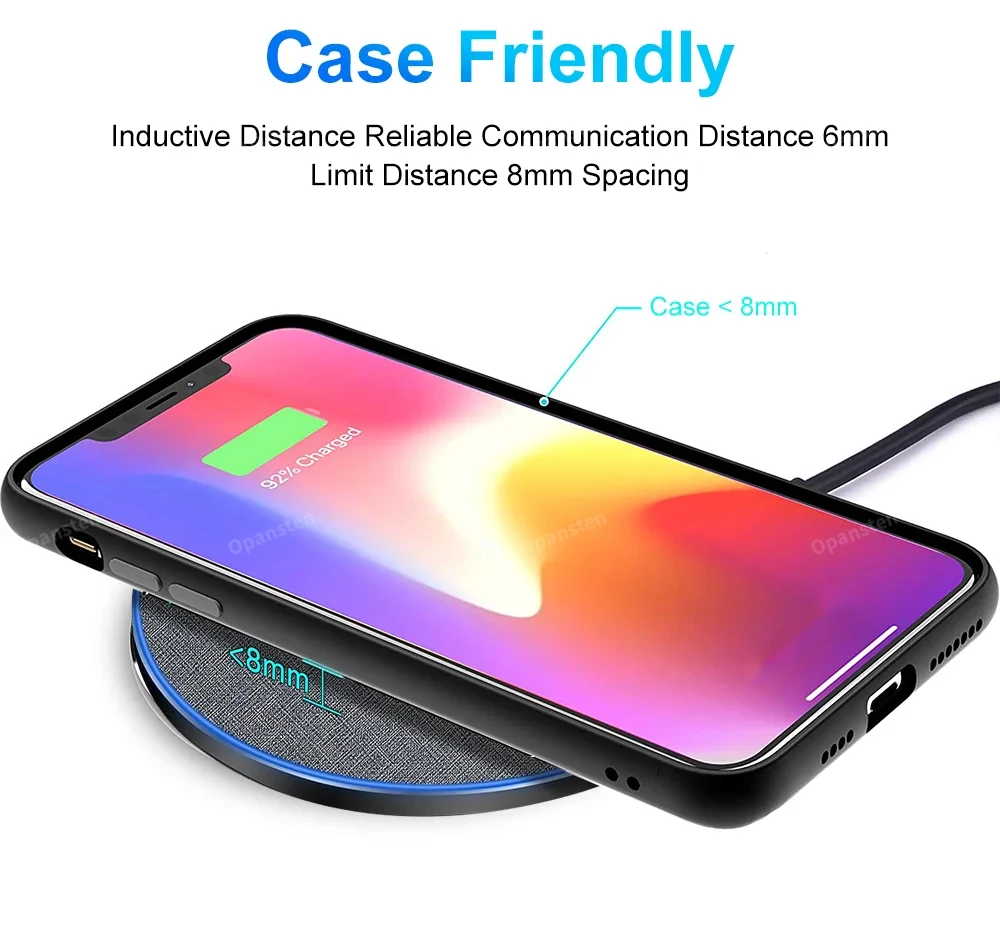 【Easy wireless charging and case friendly】The fast wireless charger allows you to charge your device at a higher charging speed which up to 1.8X faster than standard wireless charger.Don’t fumble with your phone case. Inductive charging directly through protective cases up to 6mm/0.23inch thick (not including cases with magnetic or metal attachments).