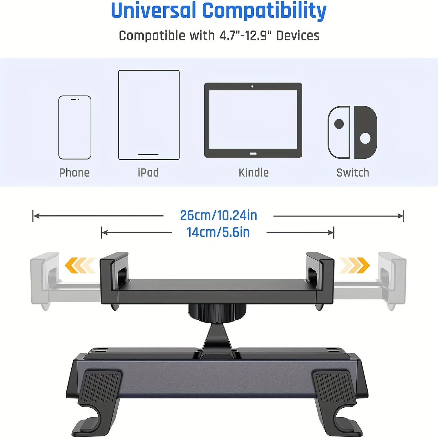 【 Universal Compatibility】 road trip car headrest tablet mount works with all 4.7-12.9 inch devices, such as new 2022/ 2021 iPad Pro 11/ 12.9 inch, iPad 10.9, iPad Air 5, iPad Mini 6/ 5/ 4/ 3, iPad Pro 9.7/ 10.5, 2020 iPad Pro, iPad 5th/ 6th/ 7th/ 8th/ 9th/ 10th generation, Galaxy Tab, iPhone 14 Pro Max, iPhone 13 Pro Max, 12 11 Pro Max, Xs, and other smartphones, tablets. ❗ 4.7 – 12.9” is the diagonal length of the device, not the device’s width