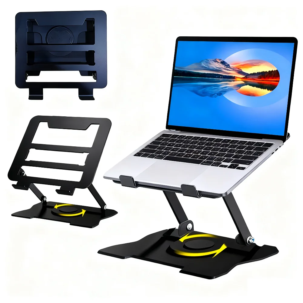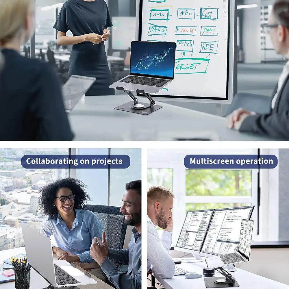 2. 360 ° rotation: It is equipped with a 360 ° rotation double axis to connect with the base, making 360 ° rotation more flexible. The computer bracket allows you to rotate your laptop to any angle.