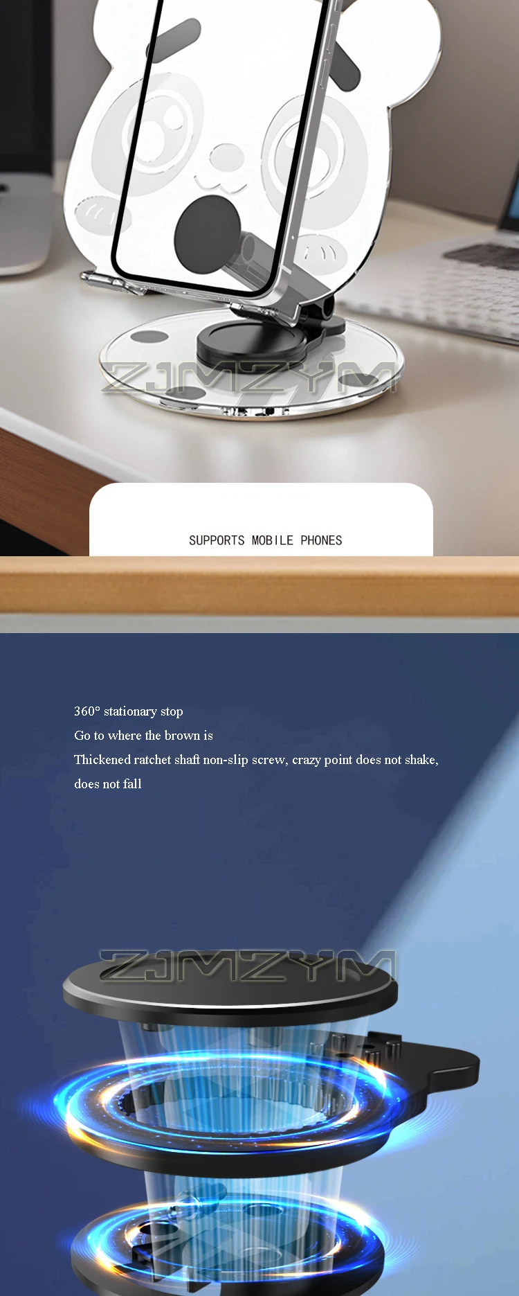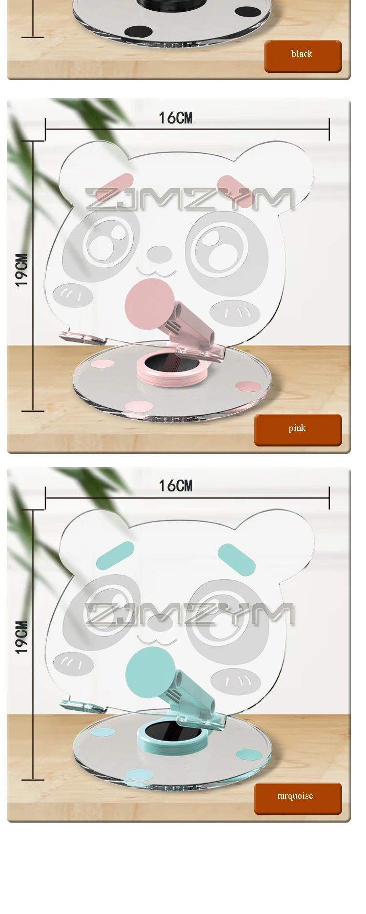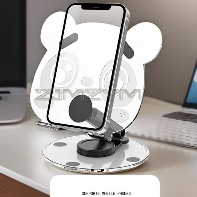 360° Rotation Acrylic Tablet Stand Adjustable Phone Bracket Folding Anti-slip Holder Desktop Clear Bear