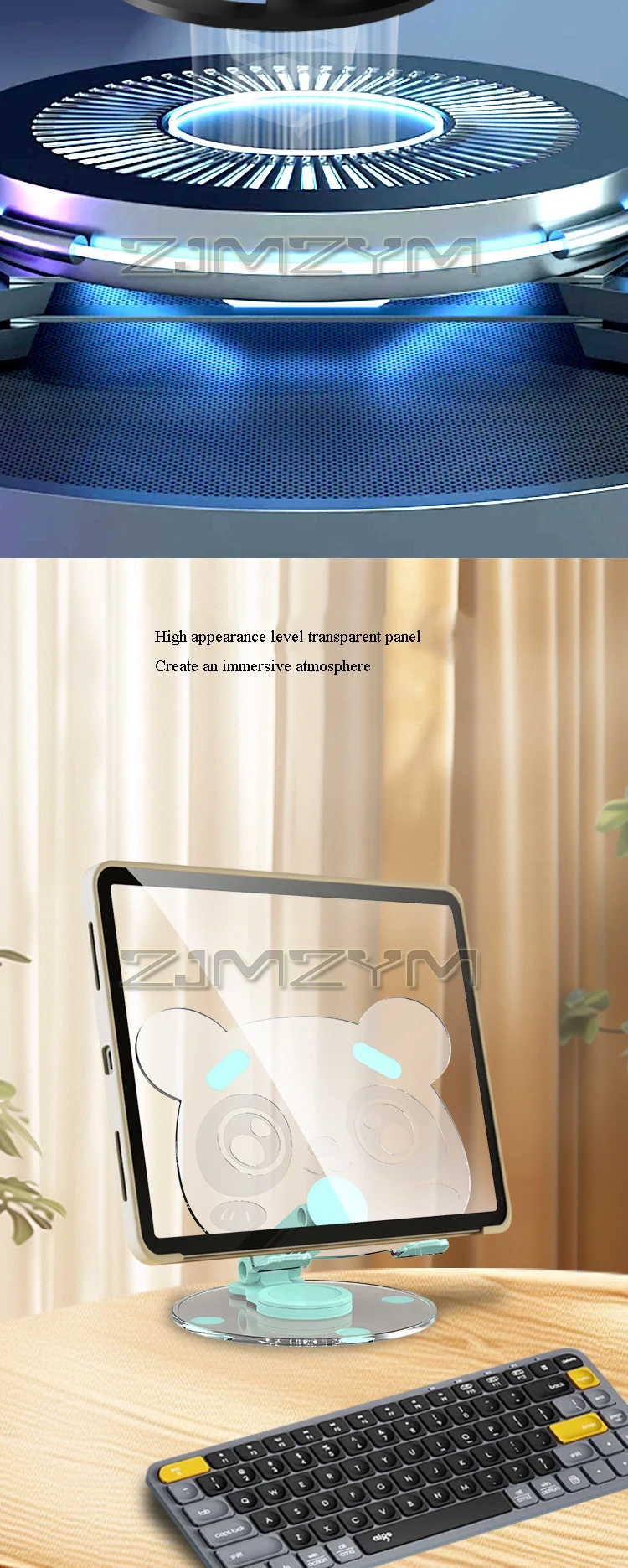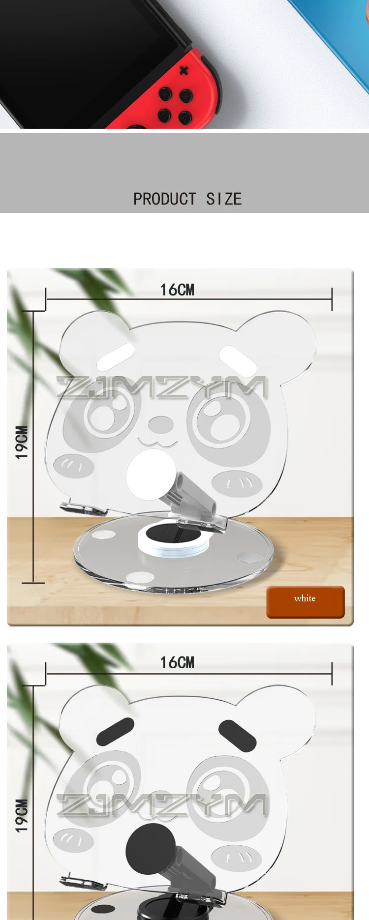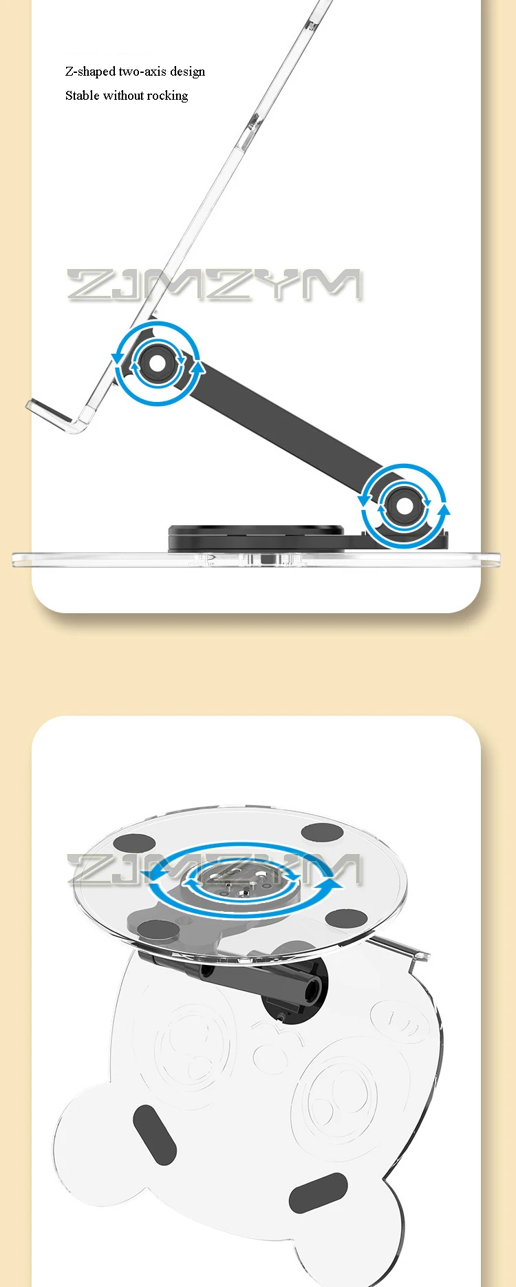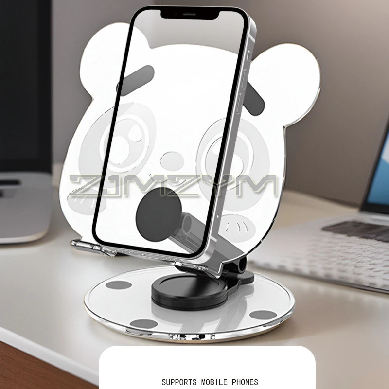 360° Rotation Acrylic Tablet Stand Adjustable Phone Bracket Folding Anti-slip Holder Desktop Clear Bear Pattern Tablet Support