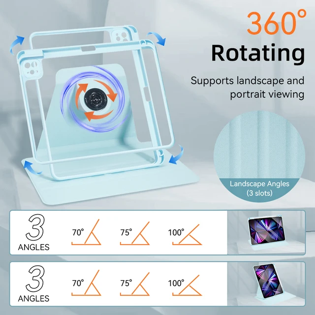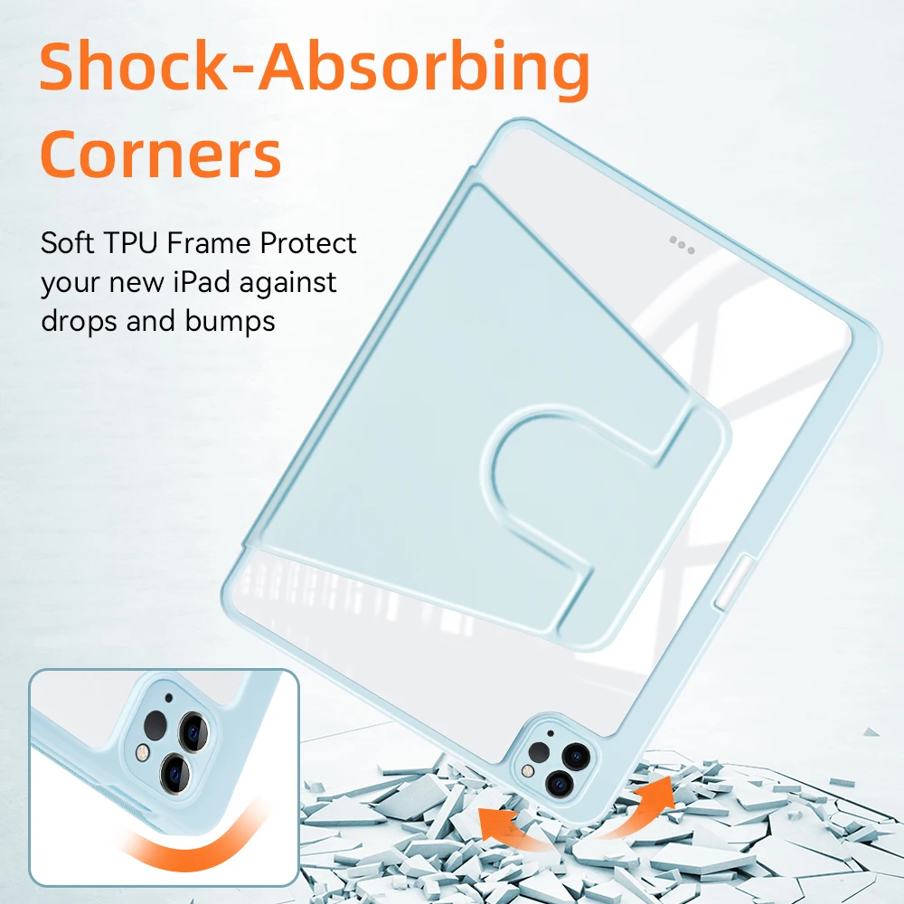 360° Rotation iPad Case for 2024 Air 11 13 M2 Pro 11 13 M4 Air 4 5 10.9 iPad 7/8/9/10th Generation