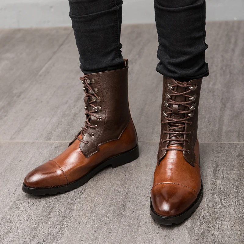 38~48 Autumn Winter Elegant Chelsea Leather Men Couple Shoes Size Slip-on Dress Formal Mens Ankle Boots