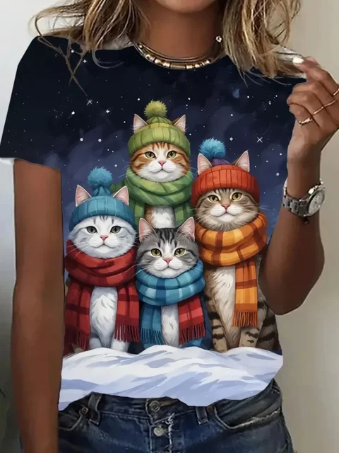 Original price was: 121.22$.60.60$Current price is: 60.60$.3D Kitten Print Women’s T-shirt Everyday Casual Women’s Fashion Short Sleeve Women’s