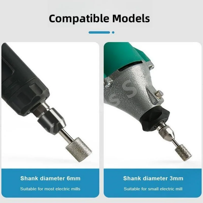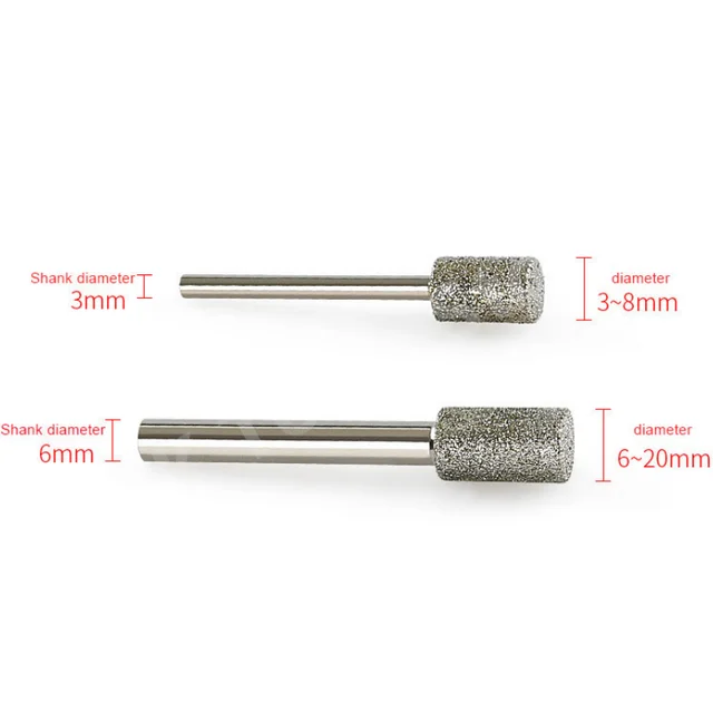 3mm-20mm Cylindrical Diamond Burr Grinding Bit 3/6mm Shank Stone Jade Carving Grinding Engraving Drill Bit Dremel Rotary Tools