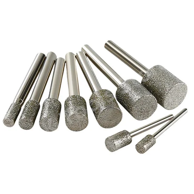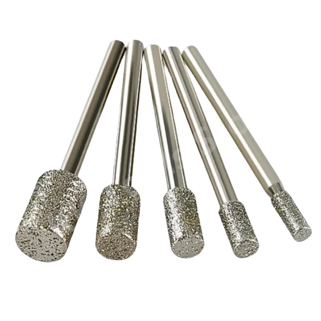 3mm-20mm Cylindrical Diamond Burr Grinding Bit 3/6mm Shank Stone Jade Carving Grinding Engraving Drill