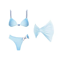 3Pcs Button Bikini 2025 Bandeau Biquini Women Sexy Swimsuit Push Up Swimwear Female Swim Suit One Shoulder