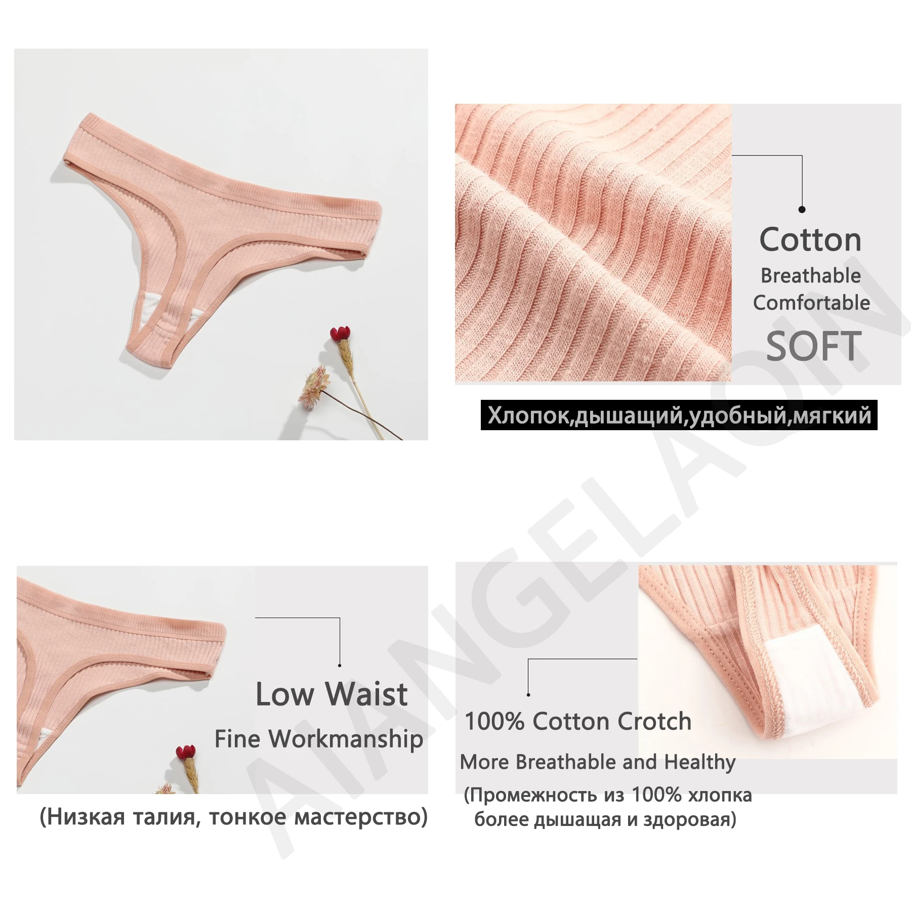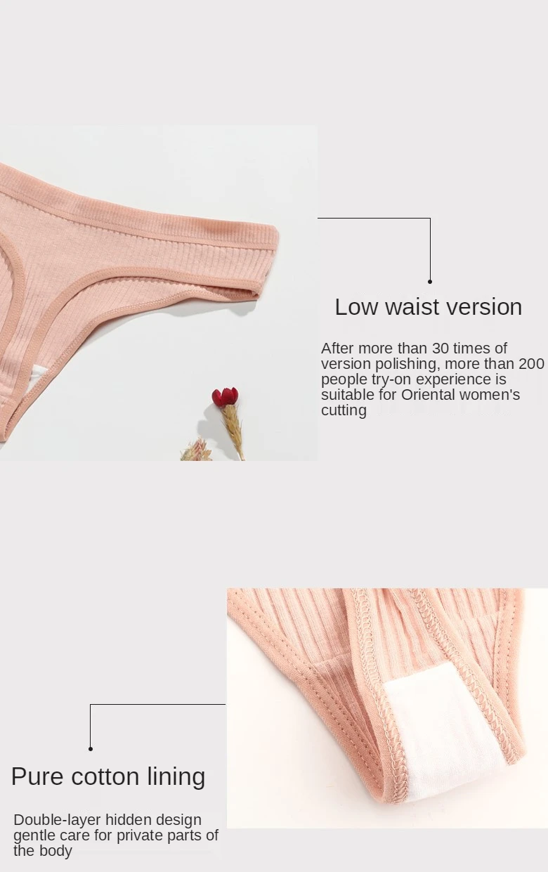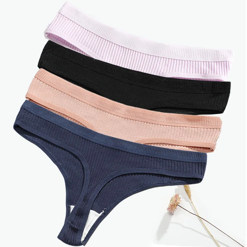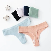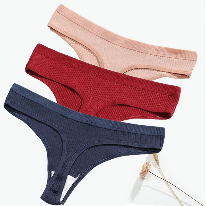 3Pcs/Lot Sexy Thong Women Tanga Low Waist Underwear Girls Brief Breath T-back Cotton Panties Female Solid Color Underpant Ladies