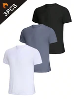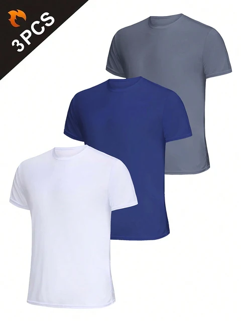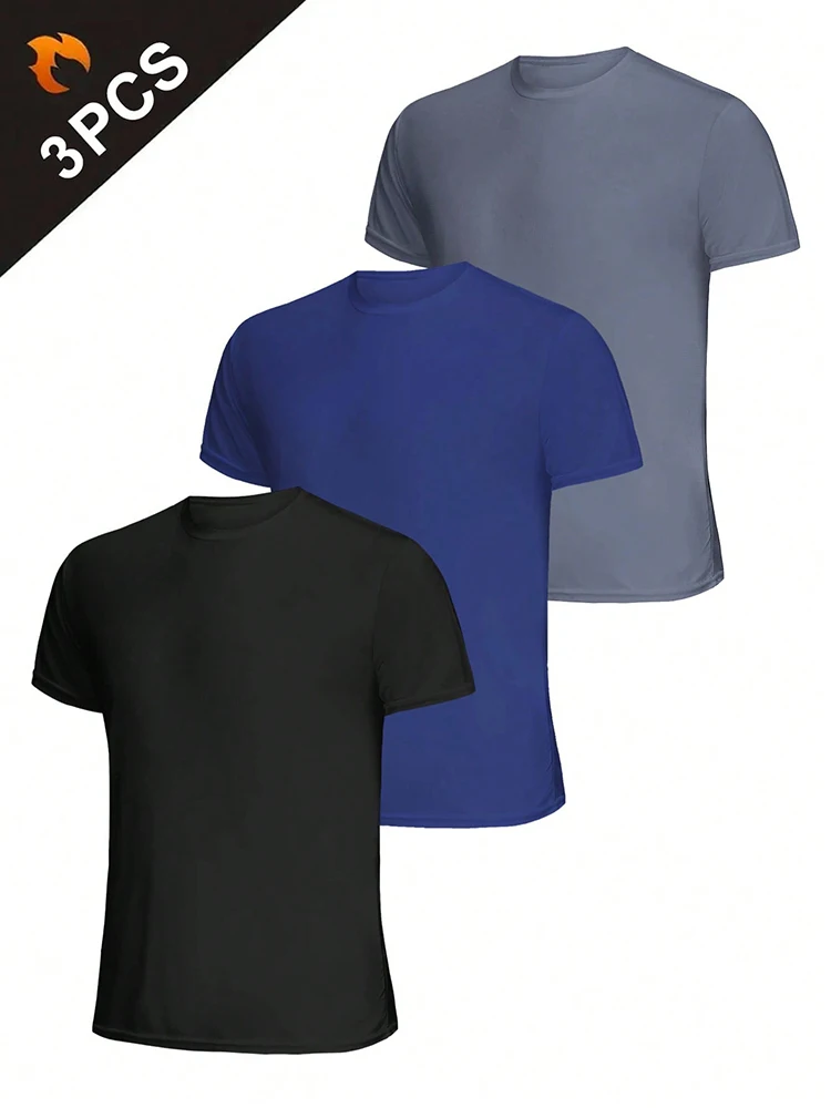 3Pcs Men’s Ultralight Quick Dry Sport T-Shirt, Solid Color Breathable Lightweight Top For Fitness