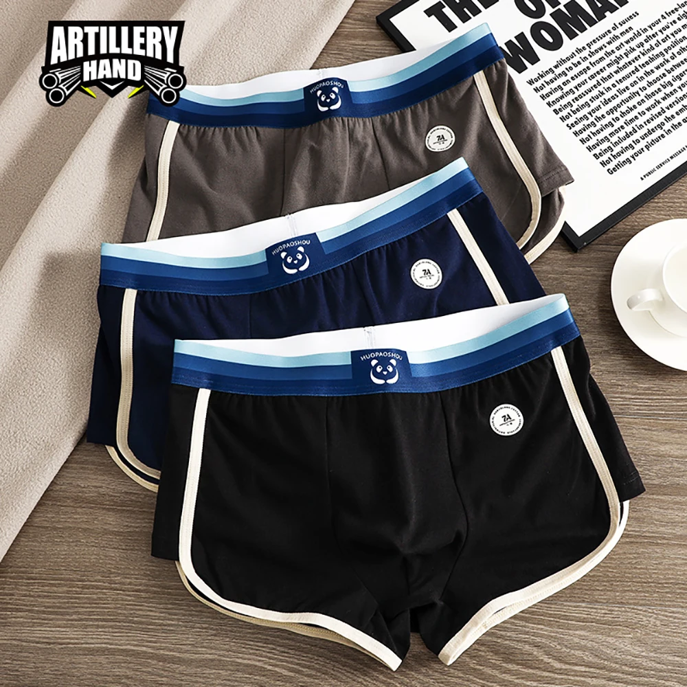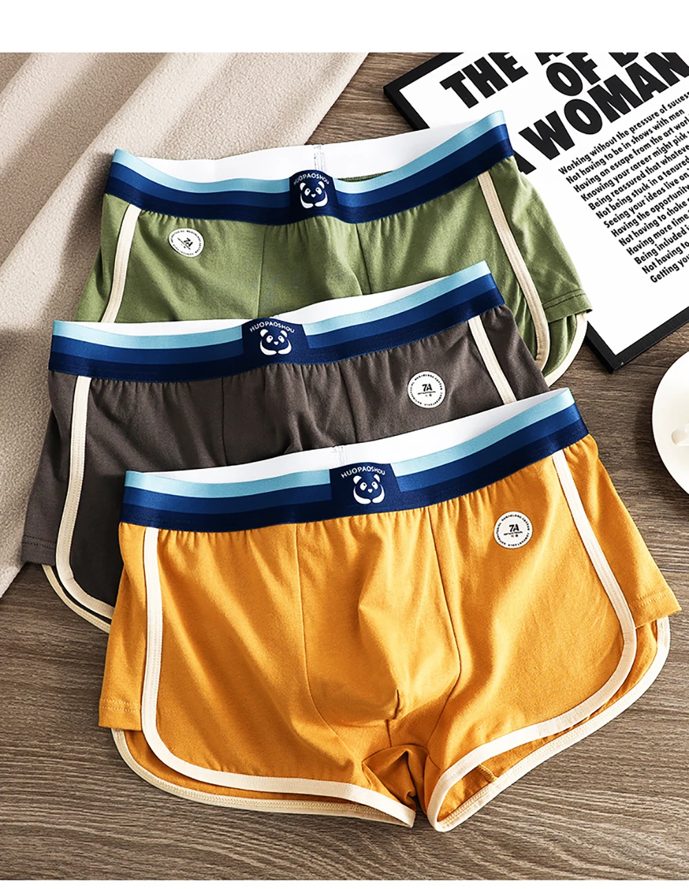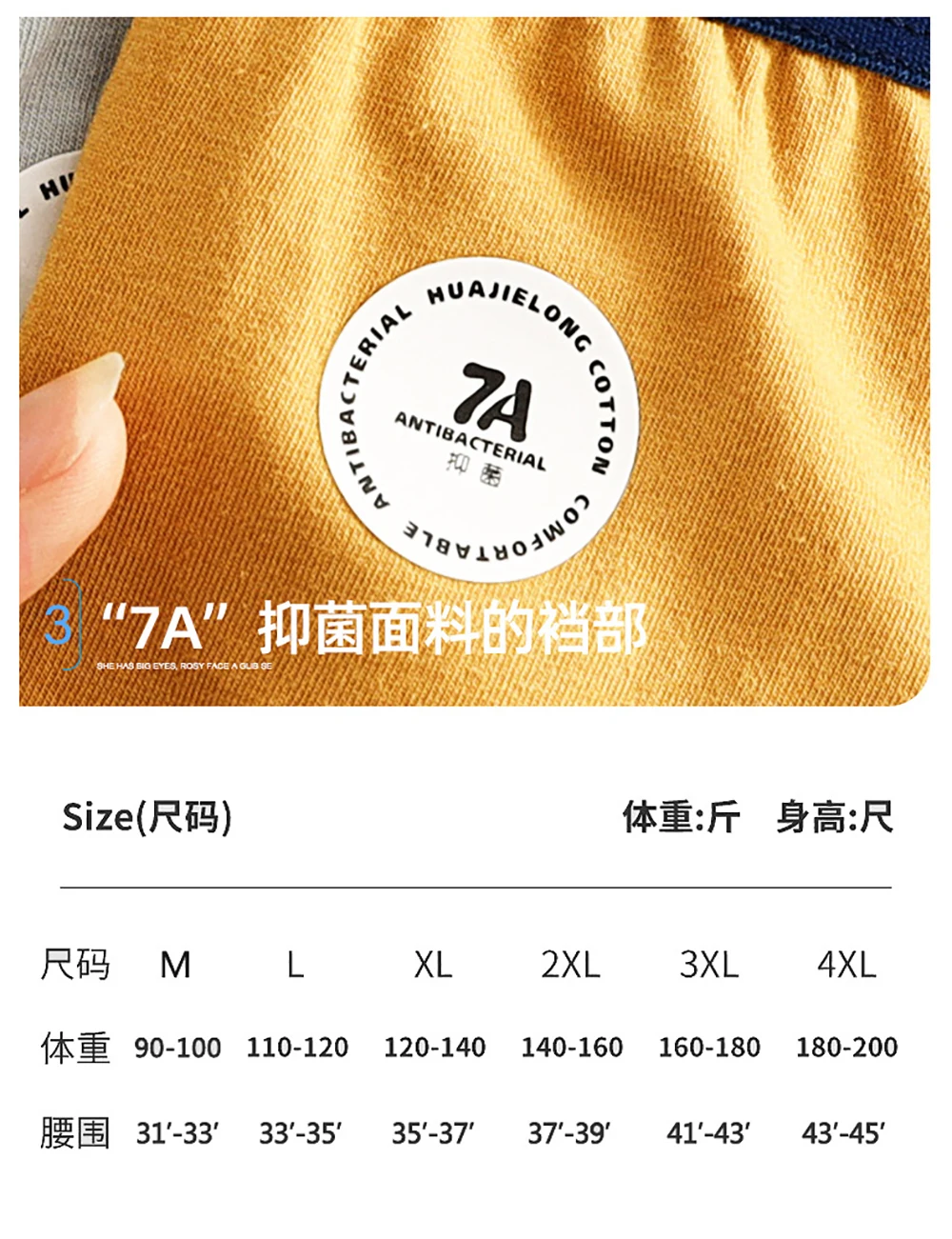 3PCS/Pack 7A Antibacterial Big U Mesh Breathable Crotch Men's Panties 100% Cotton Trendy Underpants High Elastic Waist Boxers