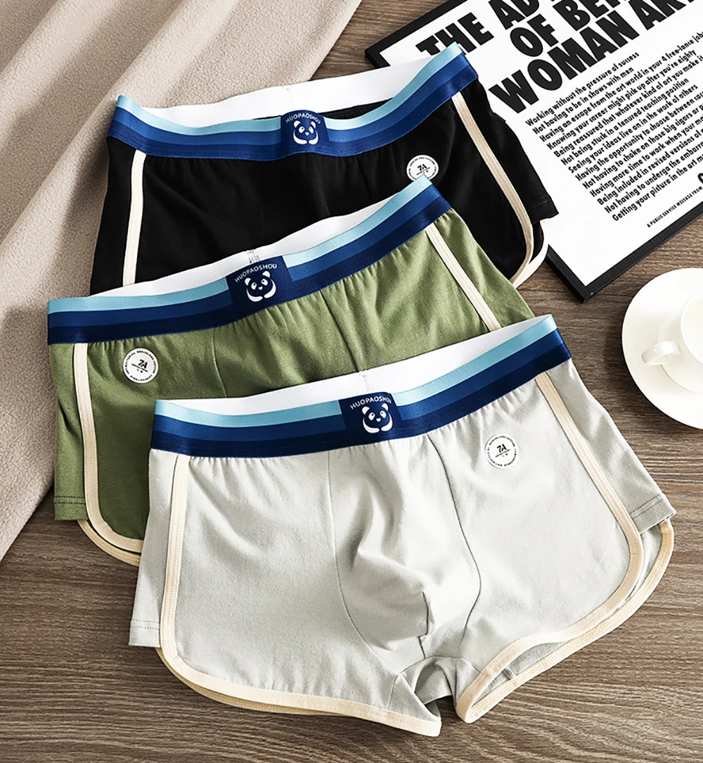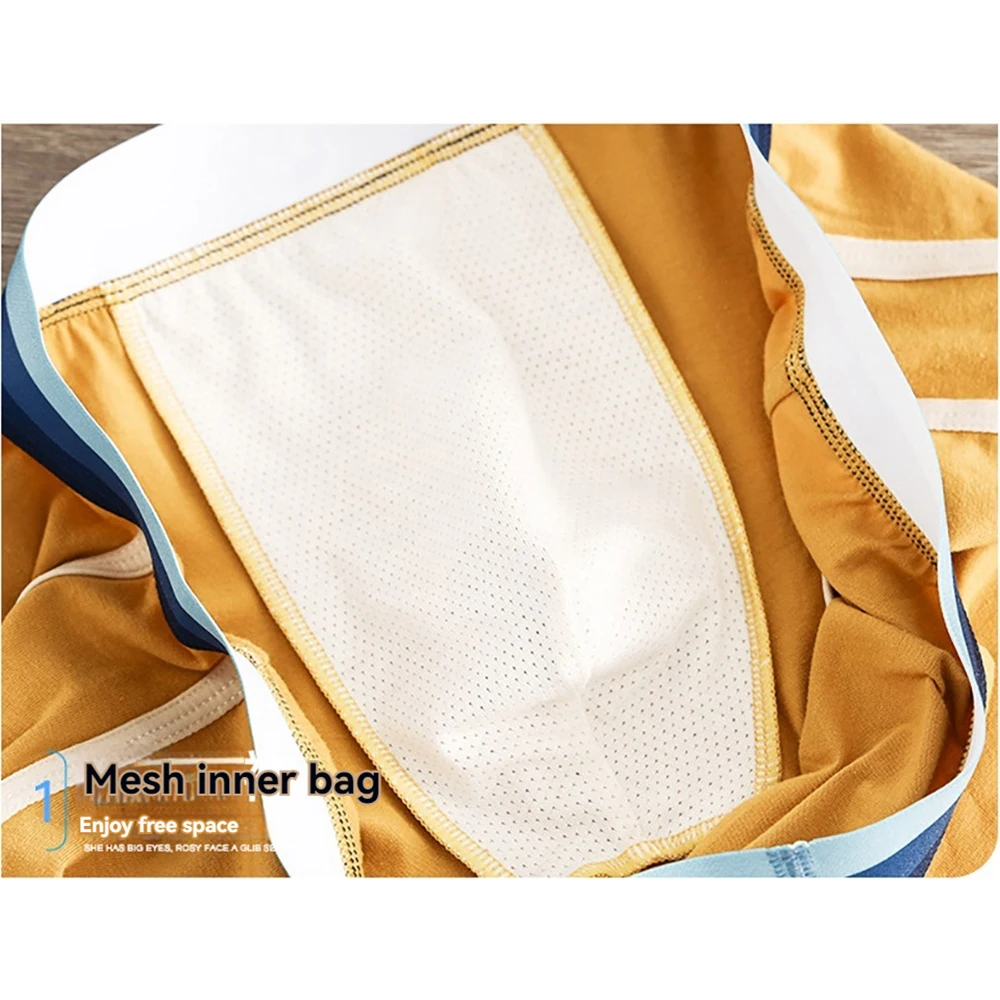3PCS/Pack 7A Antibacterial Big U Mesh Breathable Crotch Men’s Panties 100% Cotton Trendy Underpants