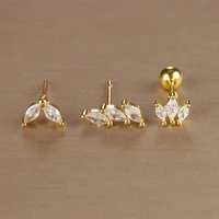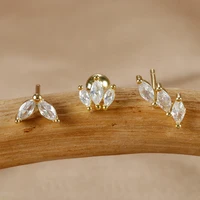 4pcs Fashion Cubic Zirconia Flower Hoop Earrings Set 18K Gold Plated Stainless Steel Stud Earring Piercing Jewelry aretes mujer