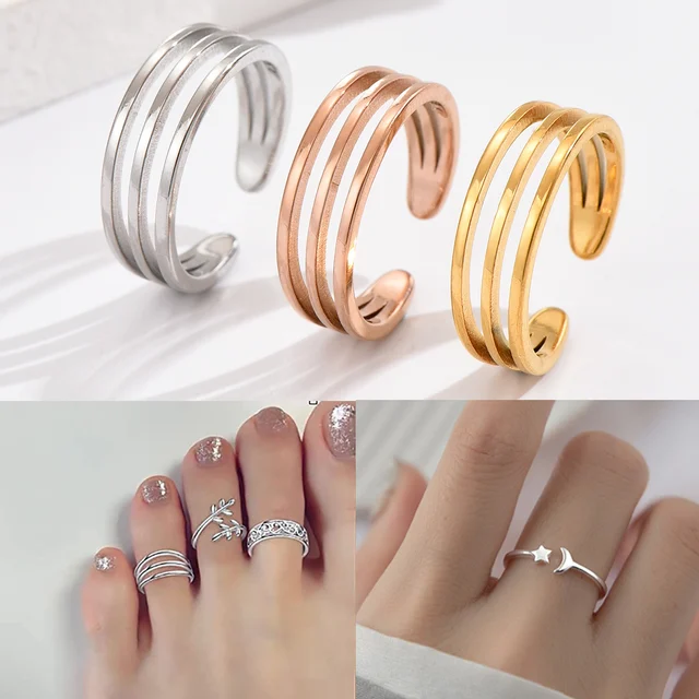 3Pcs Stainless Steel Simple Foot Ring Adjustable Opening Toe Ring for Women Girl Man Summer Beach Vacation