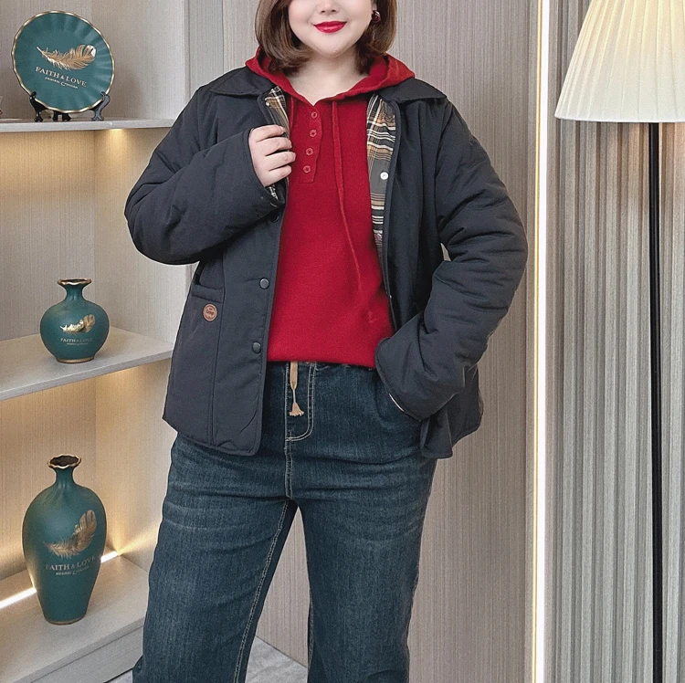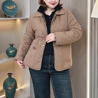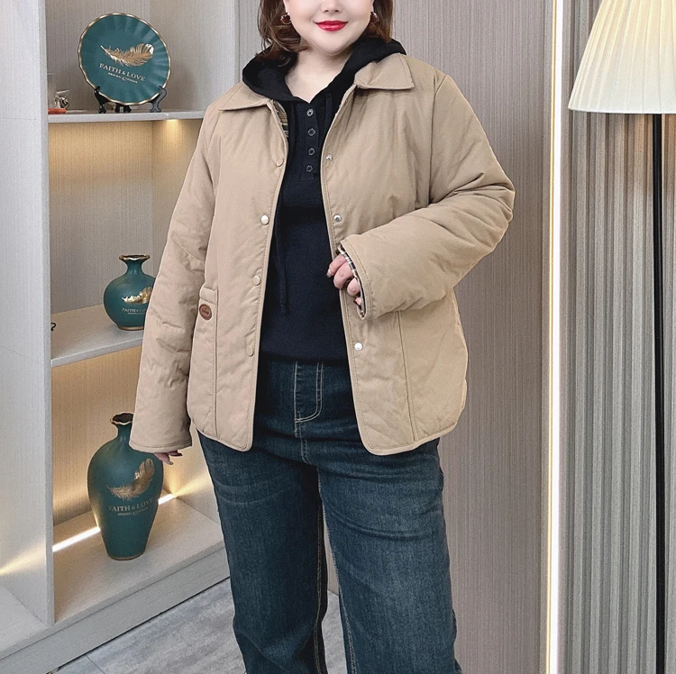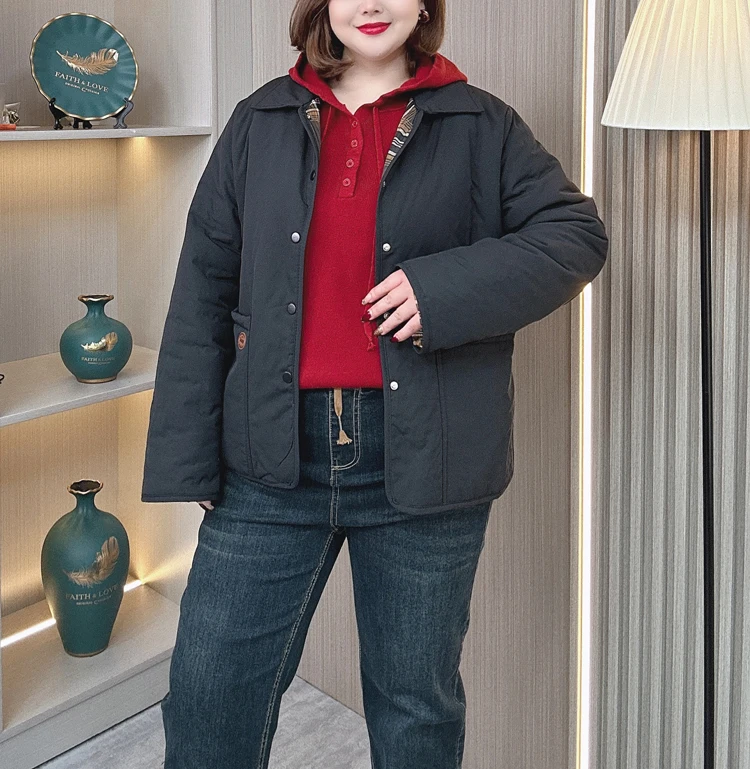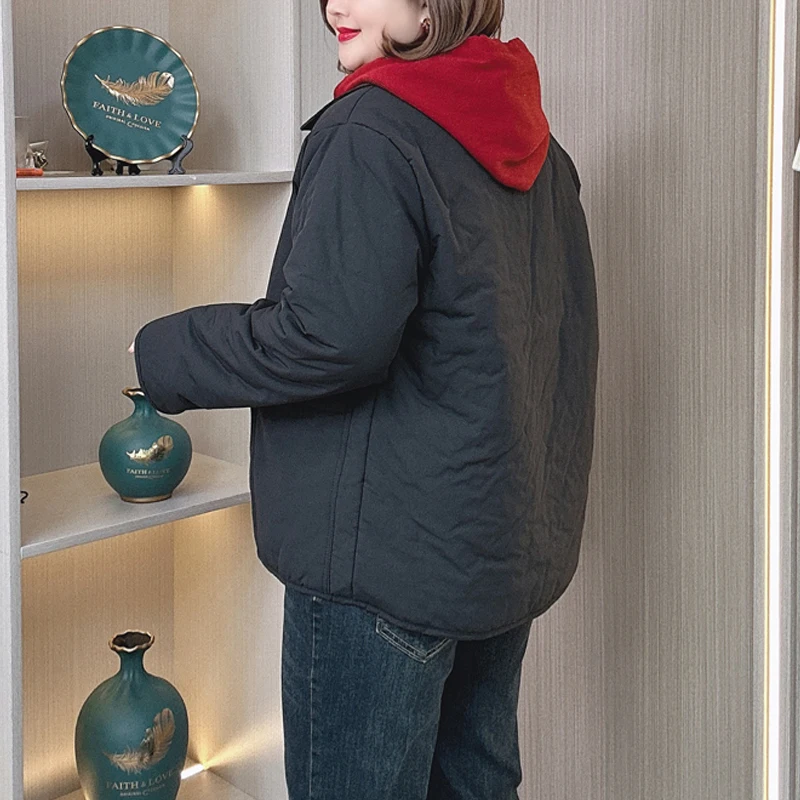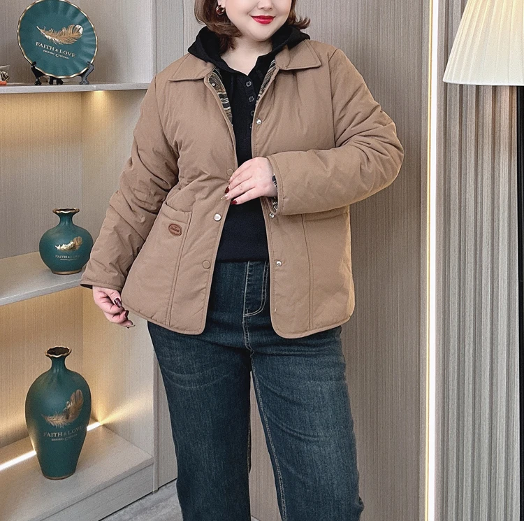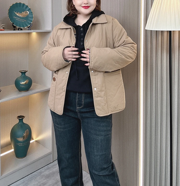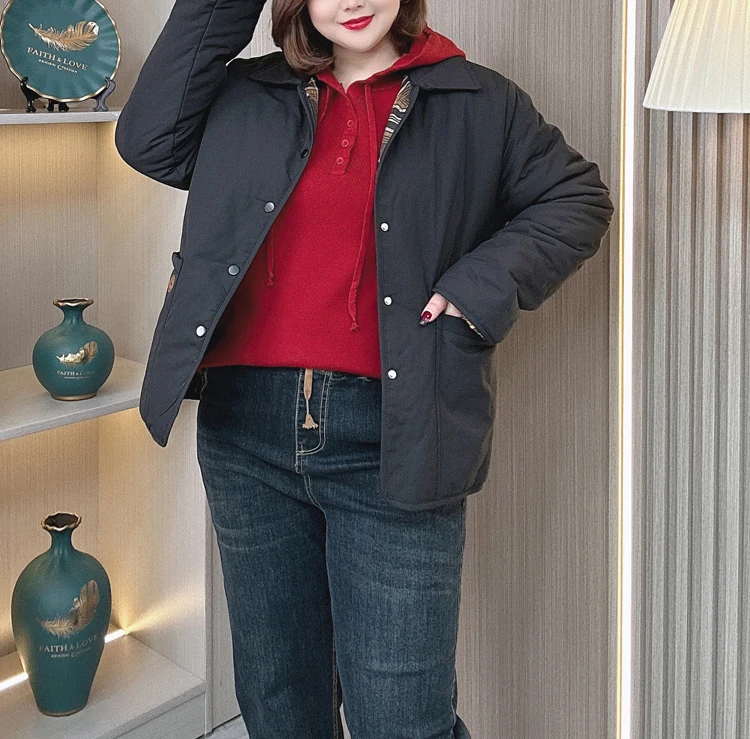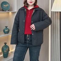 3XL 4XL PLUS Size Women's Parka Autumn Winter Loose Lapel Labeling Cotton-Padded Coat 888