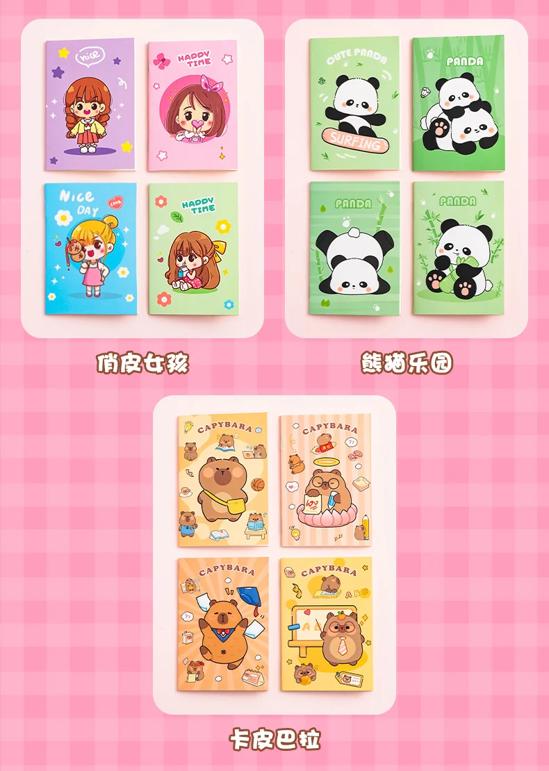 4 books / 1 piece cartoon small notebook cute notepad mini portable pocket book stationery small prizes online store gift