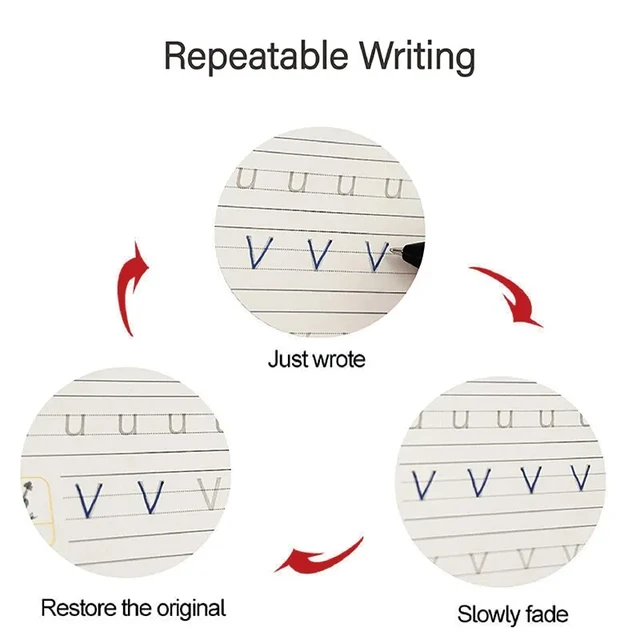 【Magic Practice Copy Book】The matching refill uses magic ink, it can automatically decoloration in 30 minutes after writing, so the copybook can be used repeatedly. Magic practice copybook for kids to writing beautiful English.