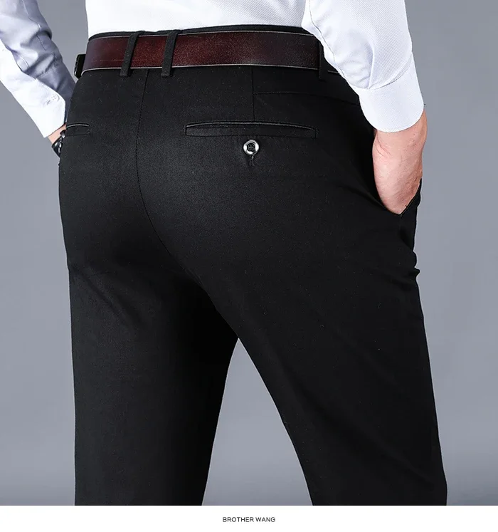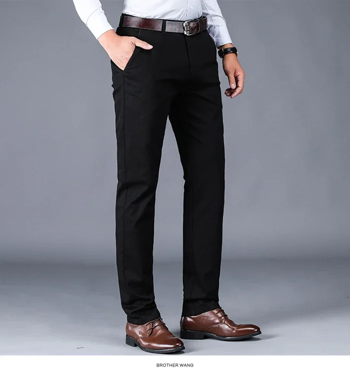 97% Cotton Elastic Casual Pants for Men Autumn Slim Straight Solid Color Business Trousers Classic Black Blue ArmyGreen Khaki