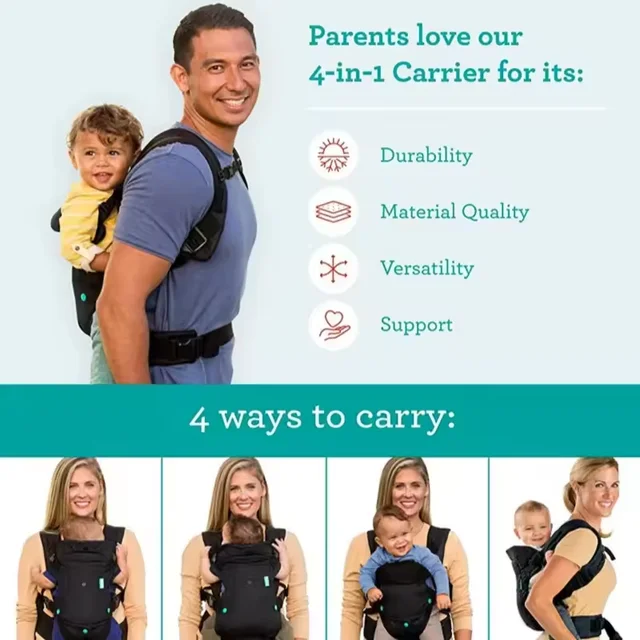 Using our 4 in 1 Multifunction Ergonomic Baby Carrier is easy and intuitive. To use the carrier in the face-in position, simply place your baby in the carrier facing you, with their legs straddling your waist. Secure the carrier by fastening the waist belt and shoulder straps, making sure that the carrier is snug but not too tight. To use the carrier in the face-out position, simply turn your baby around so that they are facing outwards, with their legs still straddling your waist. Again, secure the carrier by fastening the waist belt and shoulder straps. To use the carrier in the back carry position, simply place your baby on your back and secure the carrier using the shoulder straps and waist belt. Always make sure that your baby’s head, neck, and spine are properly supported, and that the carrier is adjusted to fit your body comfortably.