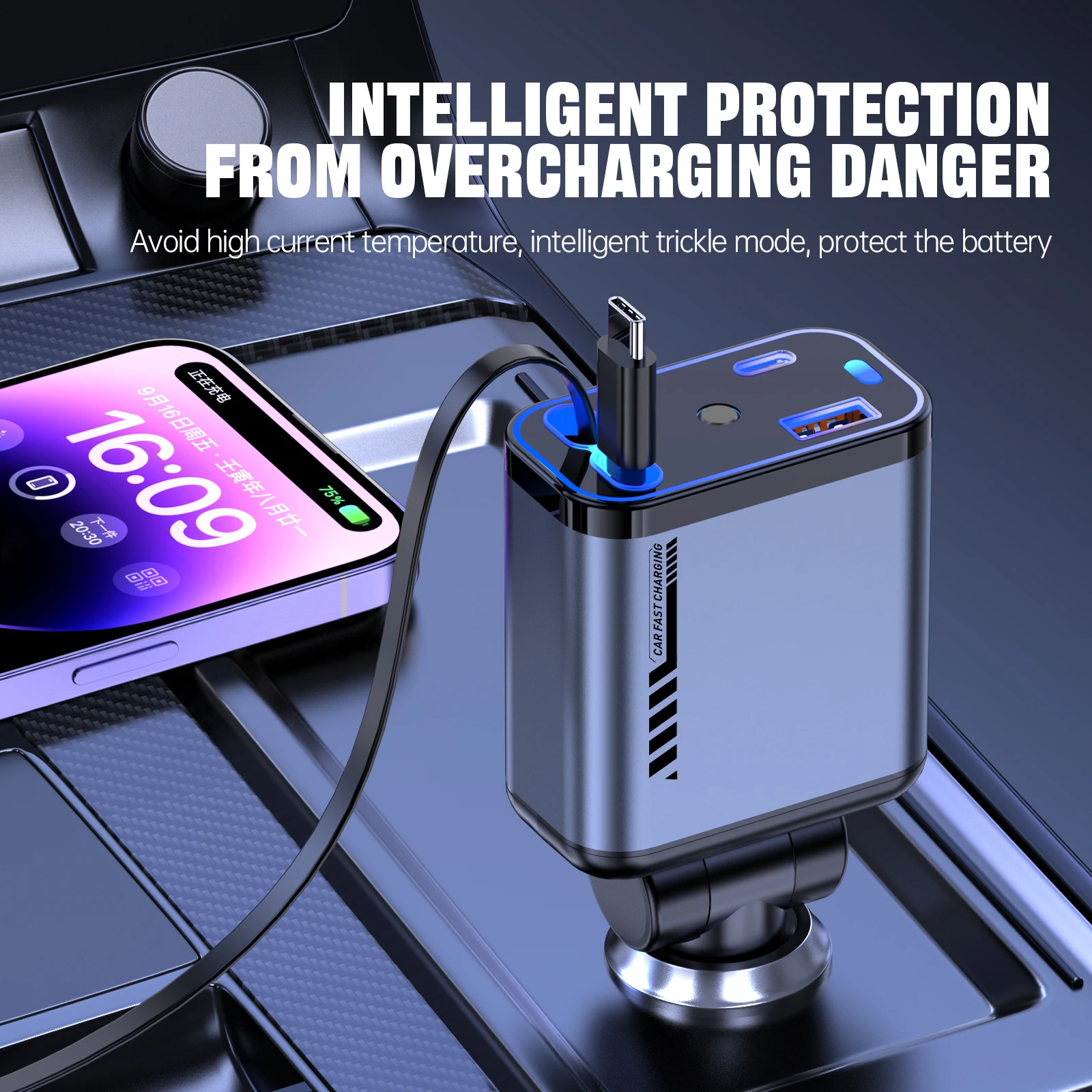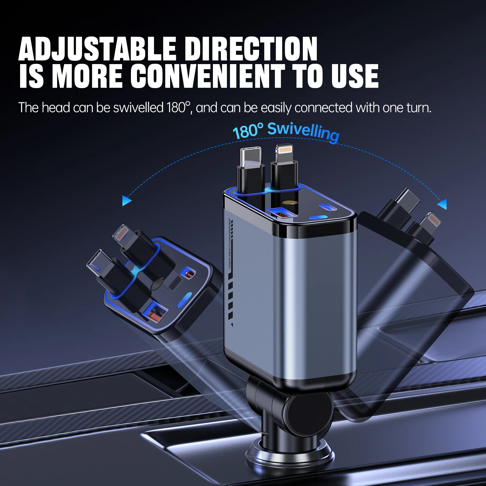 Retractable Design:Effortlessly manage cables with a retractable feature, keeping your car organized and tangle-free.