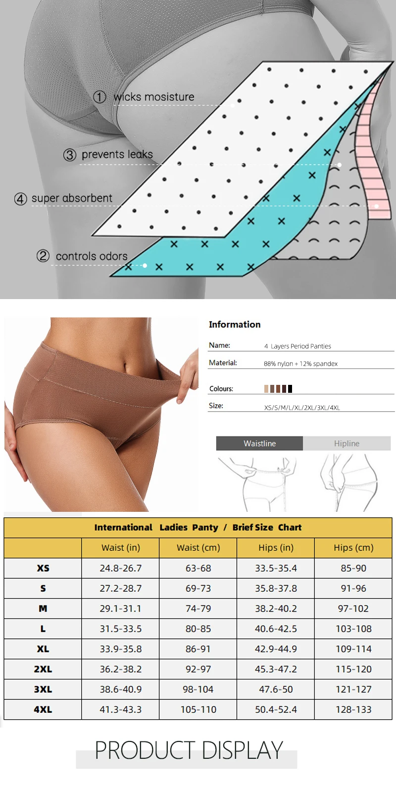4-Layer Leak Proof Menstruation Underpants Women's Panties Incontinence  Skin-Friendly Triangle Reusable Period Underwear