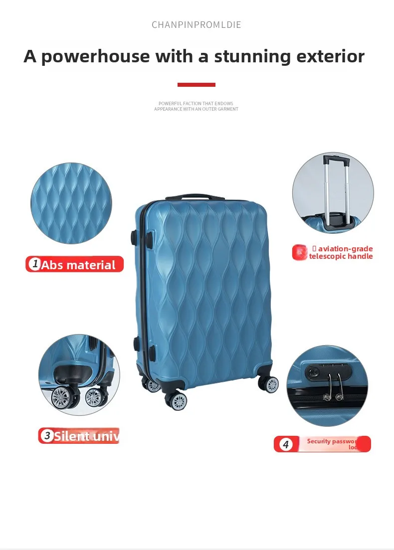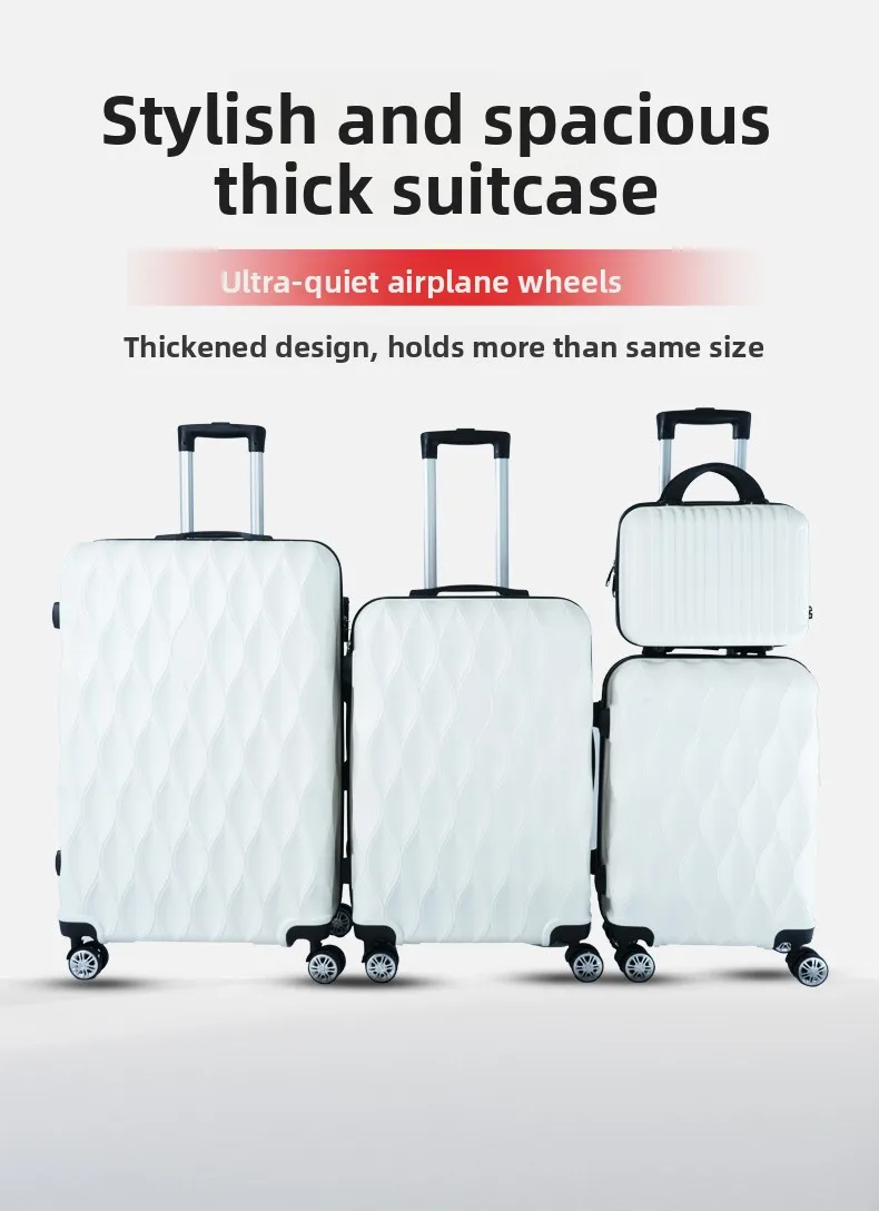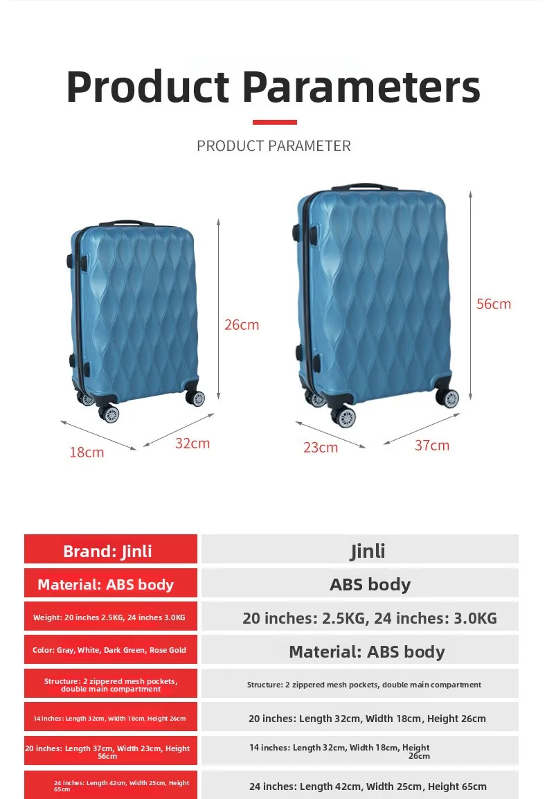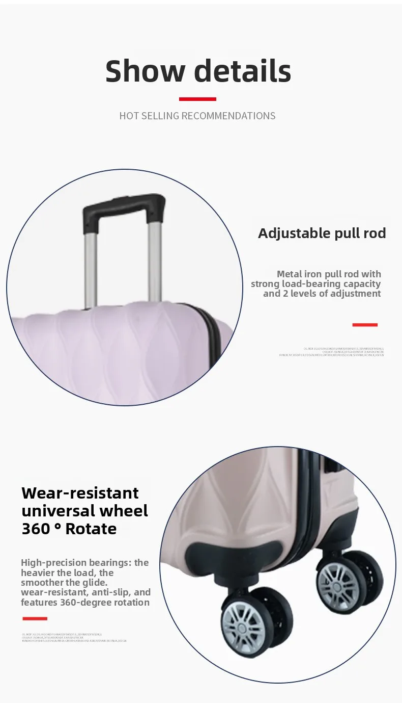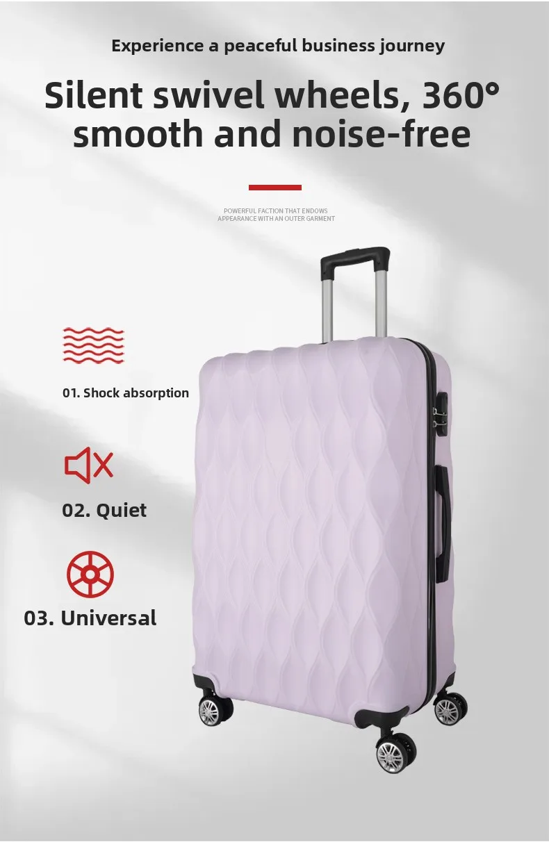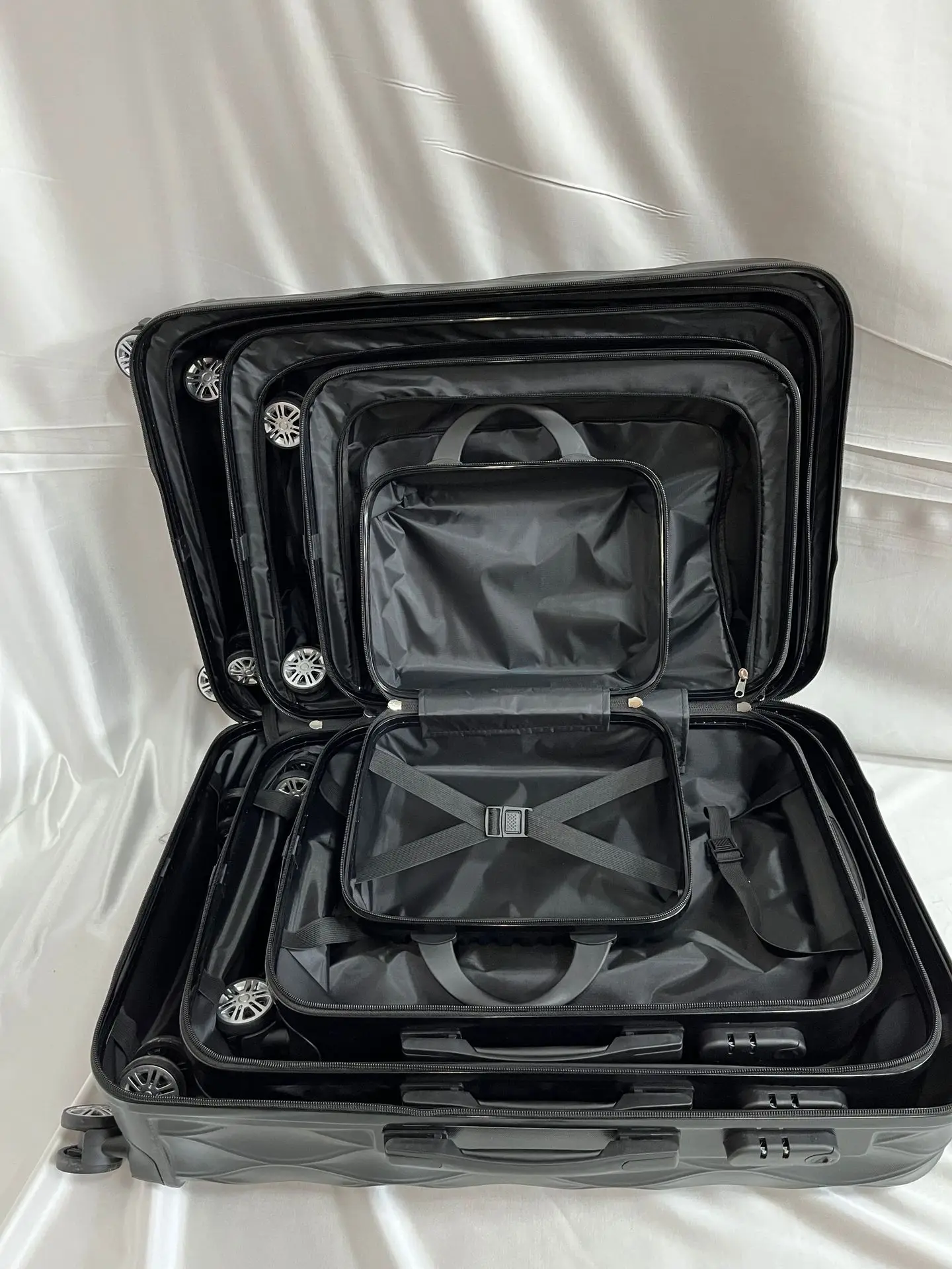 Crafted from high-quality ABS material, these suitcases are designed to withstand the rigors of travel, ensuring your belongings remain safe and secure.