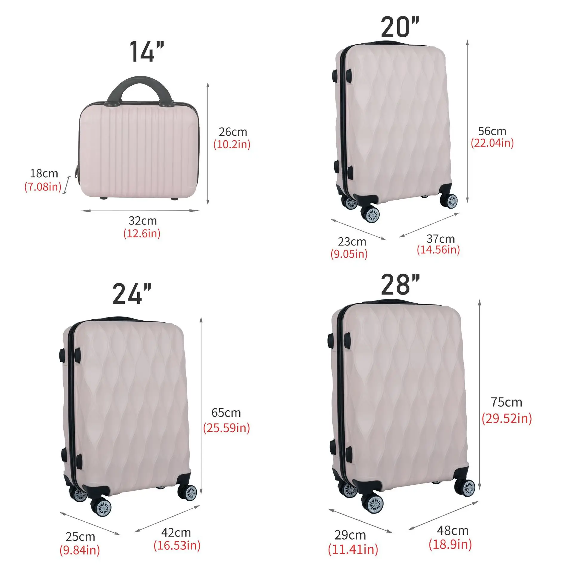 This complete set includes four suitcases of different sizes (14/20/24/28 inches), providing ample space for all your travel essentials.