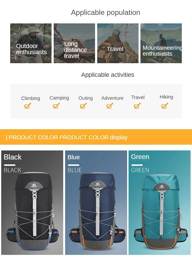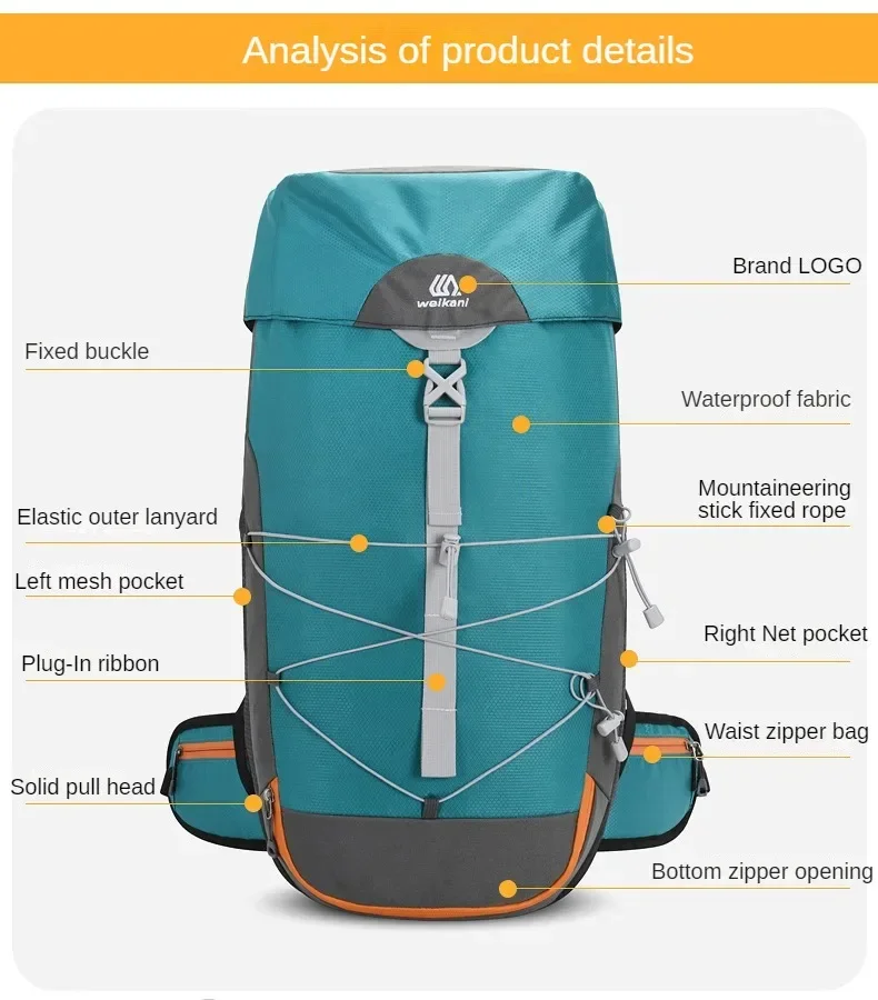 40L Large Capacity Waterproof Trekking Climbing Back Bags Travel Backpack Camping Laptop Daypack For Men Women Hiking Supplies