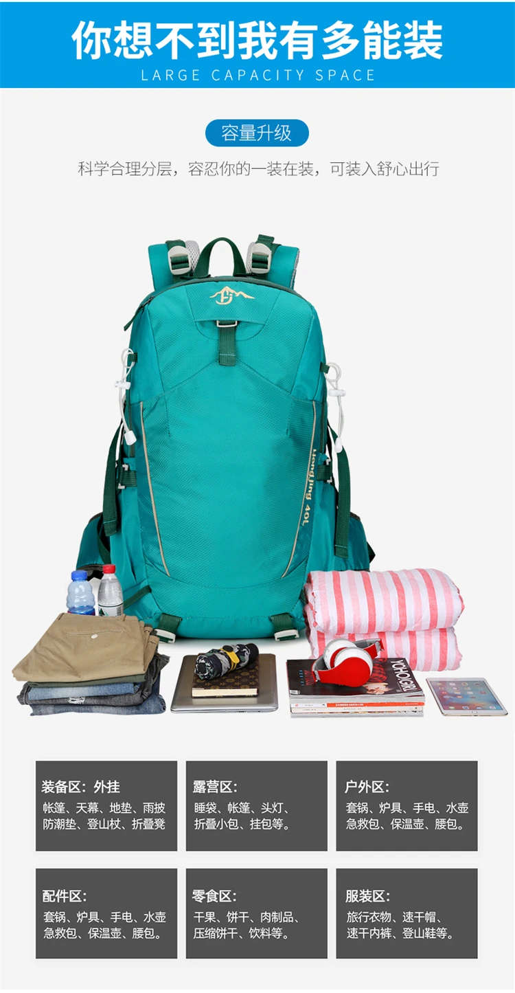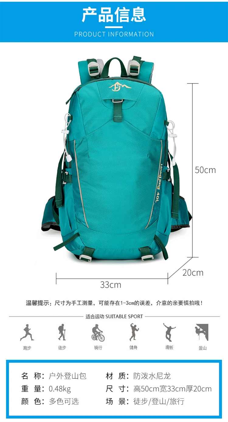 Use & scenarios (purpose and scene): this 2025 new – style outdoor backpack made of water – repellent nylon material is perfect for carrying outdoor gear, travel essentials, and personal items. It features a large capacity for organized storage with multiple compartments and a durable design. It is ideal for outdoor activities,例如 hiking、 camping and mountaineering,以及 for light travel and daily commutes. The versatile design makes it suitable for adventurers and travelers, add a touch of practicality and durability to your outdoor adventures无论您是 climbing mountains, camping in the wilderness,还是 go on a short trip.