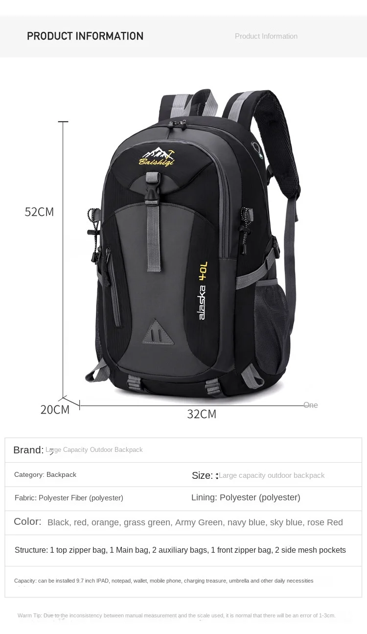 • Versatile Use :Ideal for hiking, camping, mountaineering, or casual use, this backpack is a versatile companion for all your travels.